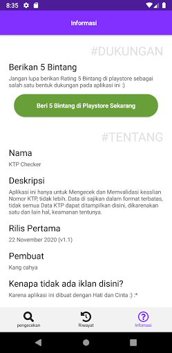 Тук в тази статия ще изброим различни начини за Изтегли KTP Checker - cek keaslian nomor KTP kamu disini на компютър в ръководство стъпка по стъпка. Така че, преди да скочим в него, нека видим техническите спецификации на KTP Checker - cek keaslian nomor KTP kamu disini.
