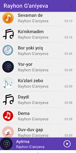 Rayhon G'aniyeva е в горната част на списъка с Музика и аудио приложения за категории в Google Playstore. Има наистина добри оценки и отзиви. Понастоящем, Rayhon G'aniyeva за Windows преодоля 1 приложение инсталации and 0 звезда среден потребителски обобщен рейтинг точки.