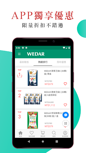WEDAR 薇達 е в горната част на списъка с Пазаруване приложения за категории в Google Playstore. Има наистина добри оценки и отзиви. Понастоящем, WEDAR 薇達 за Windows преодоля 5 000 приложение инсталации and 0 звезда среден потребителски обобщен рейтинг точки.