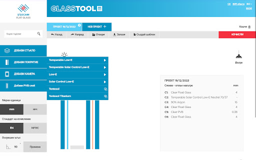 Şişecam GlassTool за компютър - Технически спецификации