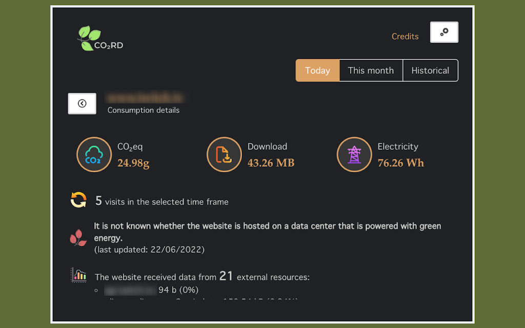 Historical - it shows the consumption and CO₂eq that your browsing behaviour caused since the start of the extension over the months and years. This feature got introduced with version 0.1.4 (end of June).