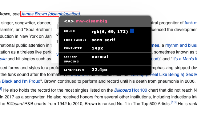 You can customise the properties displayed and add or remove the highlight on the selected element from the options page.