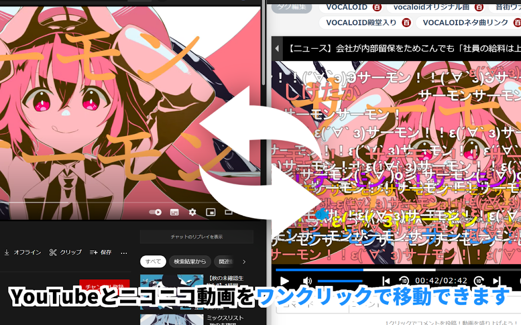 ボカロ曲のYouTube版とニコニコ動画版をワンクリックで行き来できます