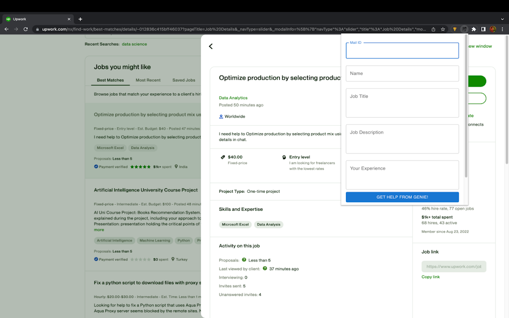 An AI-based Tool that helps freelancers to generate a proposal for a job in Upwork using minimal inputs form user.