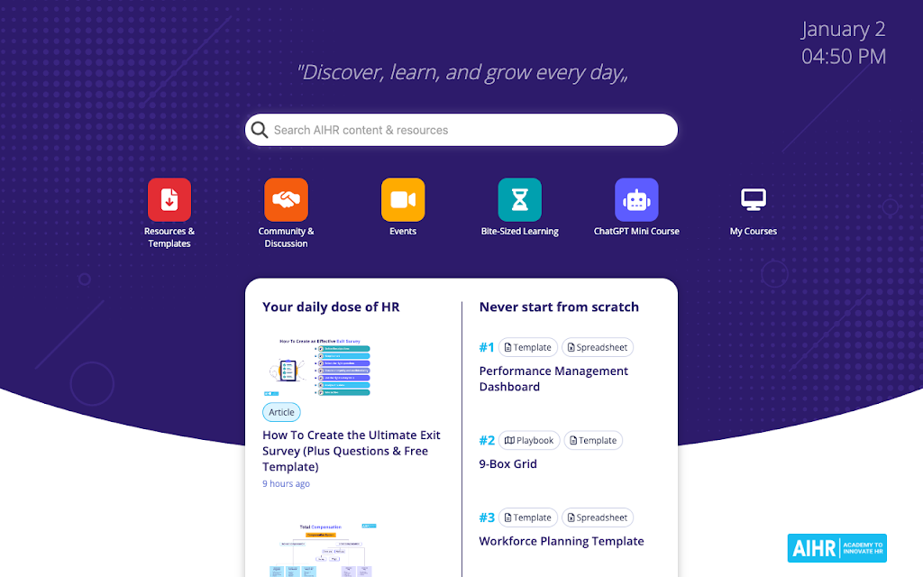 Use the AIHR Member Start Page to access all AIHR features and stay up-to-date with the latest articles, resources, and events daily