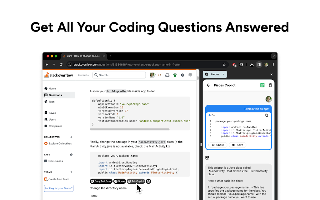 Found a snippet but don’t know what it does? Ask Pieces Copilot, which is designed to help you get the most out of your time in the browser.