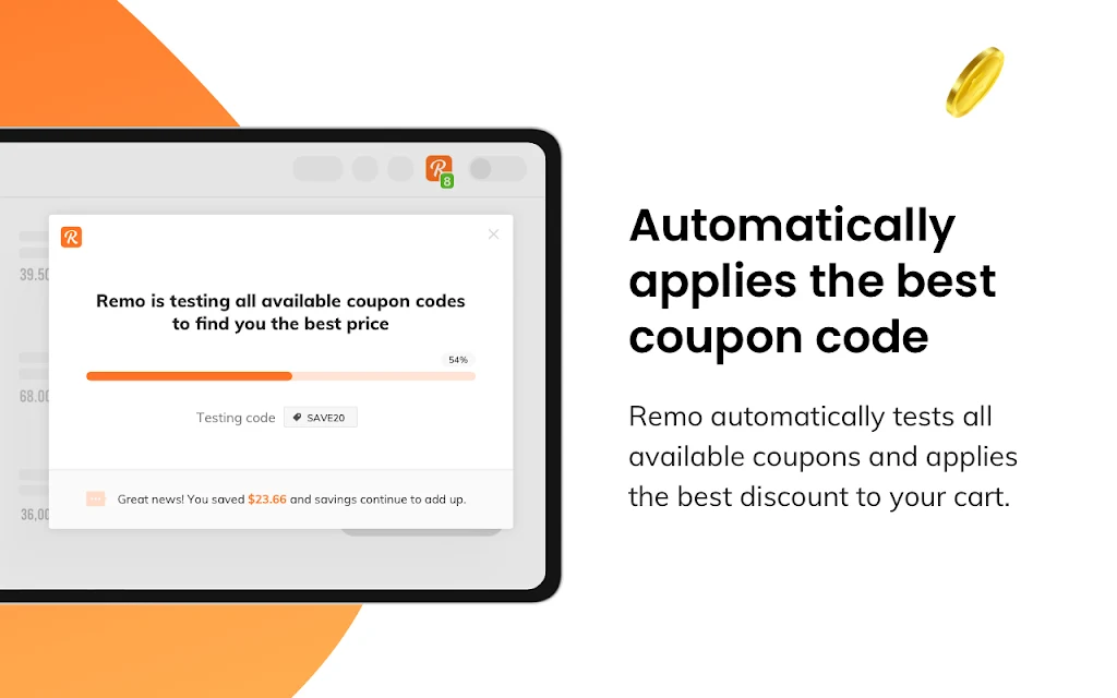 ✔ Remo will automatically test and apply the best discount to your cart