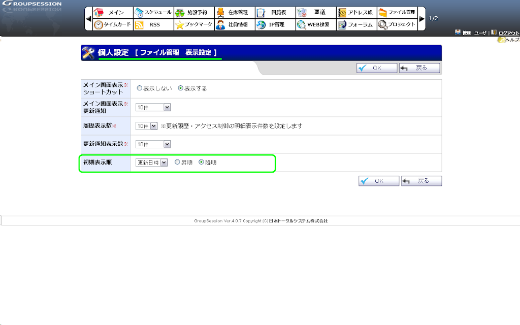 ・ファイルの初期表示順が設定できるようになります。