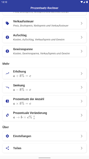 Prozentsatz-Rechner hat mit seiner einfachen, aber effektiven Benutzeroberfläche enorme Popularität erlangt. Wir haben zwei der besten Installationsmethoden aufgelistet. Prozentsatz-Rechner auf PC Windows-Laptop. Beide genannten Emulatoren sind beliebt, um Apps auf dem PC zu verwenden. Sie können einer dieser Methoden folgen, um Prozentsatz-Rechner für PC Windows 11 oder Windows 10.