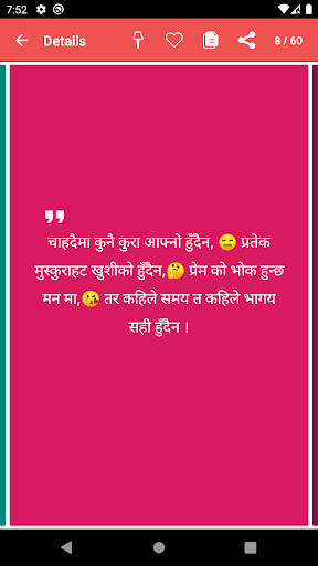 Hier in diesem Artikel werden wir verschiedene Möglichkeiten auflisten, um Herunterladen Nepali Shayari - नेपाली शयारी auf dem PC in einer Schritt-für-Schritt-Anleitung. Bevor wir uns darauf einlassen, sehen wir uns die technischen Spezifikationen von Nepali Shayari - नेपाली शयारी.