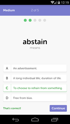CAT GRE SAT Vocab Flashcards steht ganz oben auf der Liste der Lernen Kategorie-Apps im Google Playstore. Es hat wirklich gute Bewertungspunkte und Rezensionen. Zur Zeit, CAT GRE SAT Vocab Flashcards für Windows ist überstanden App Installationen and 0 Stern durchschnittliche aggregierte Nutzerbewertungspunkte.
