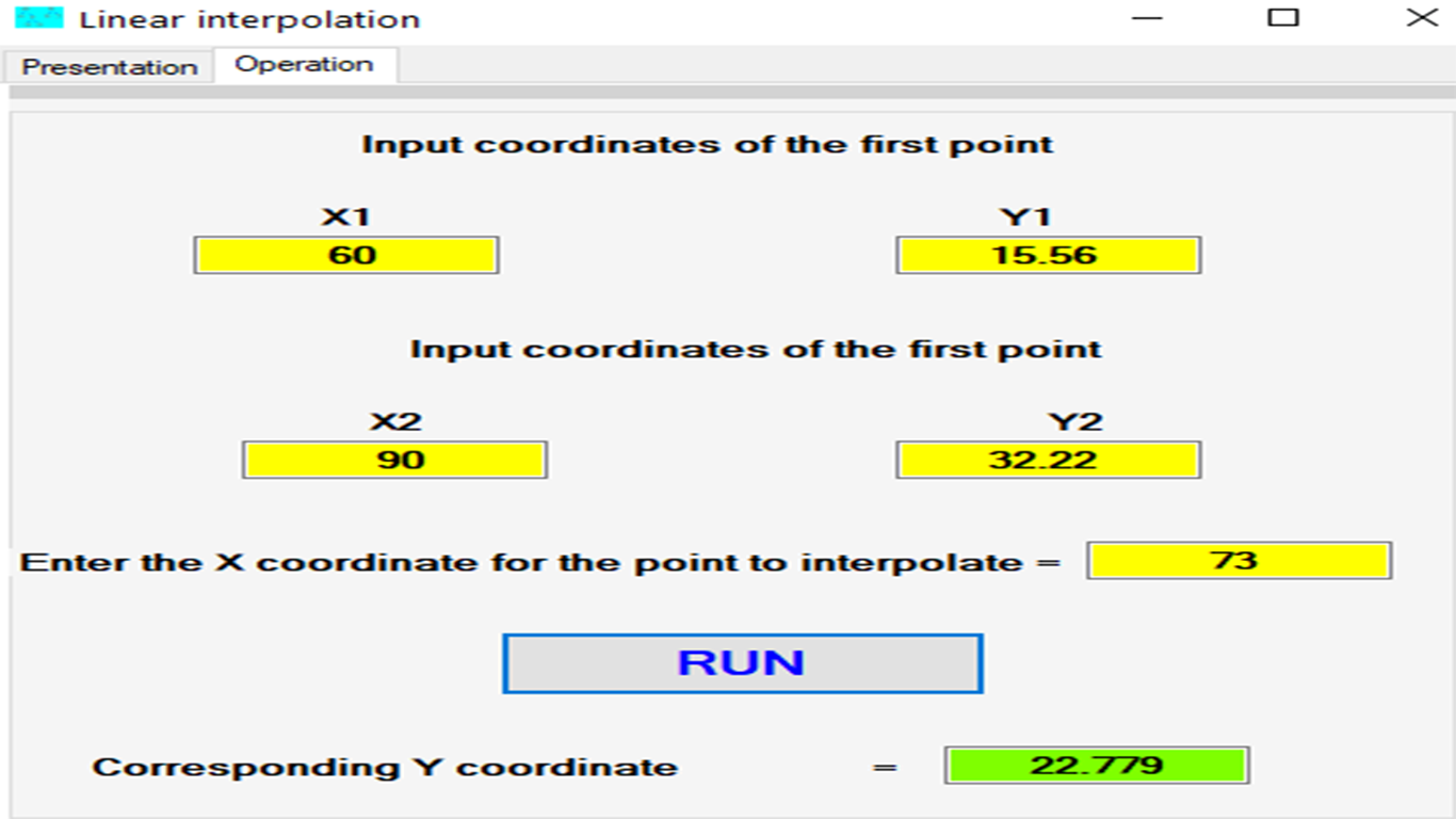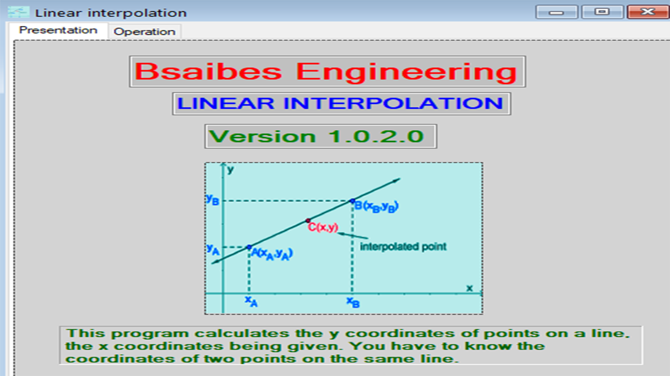 This program calculates the y coordinates of points on a line, the x coordinates being given. We have to enter the coordinates of two points on the same line.