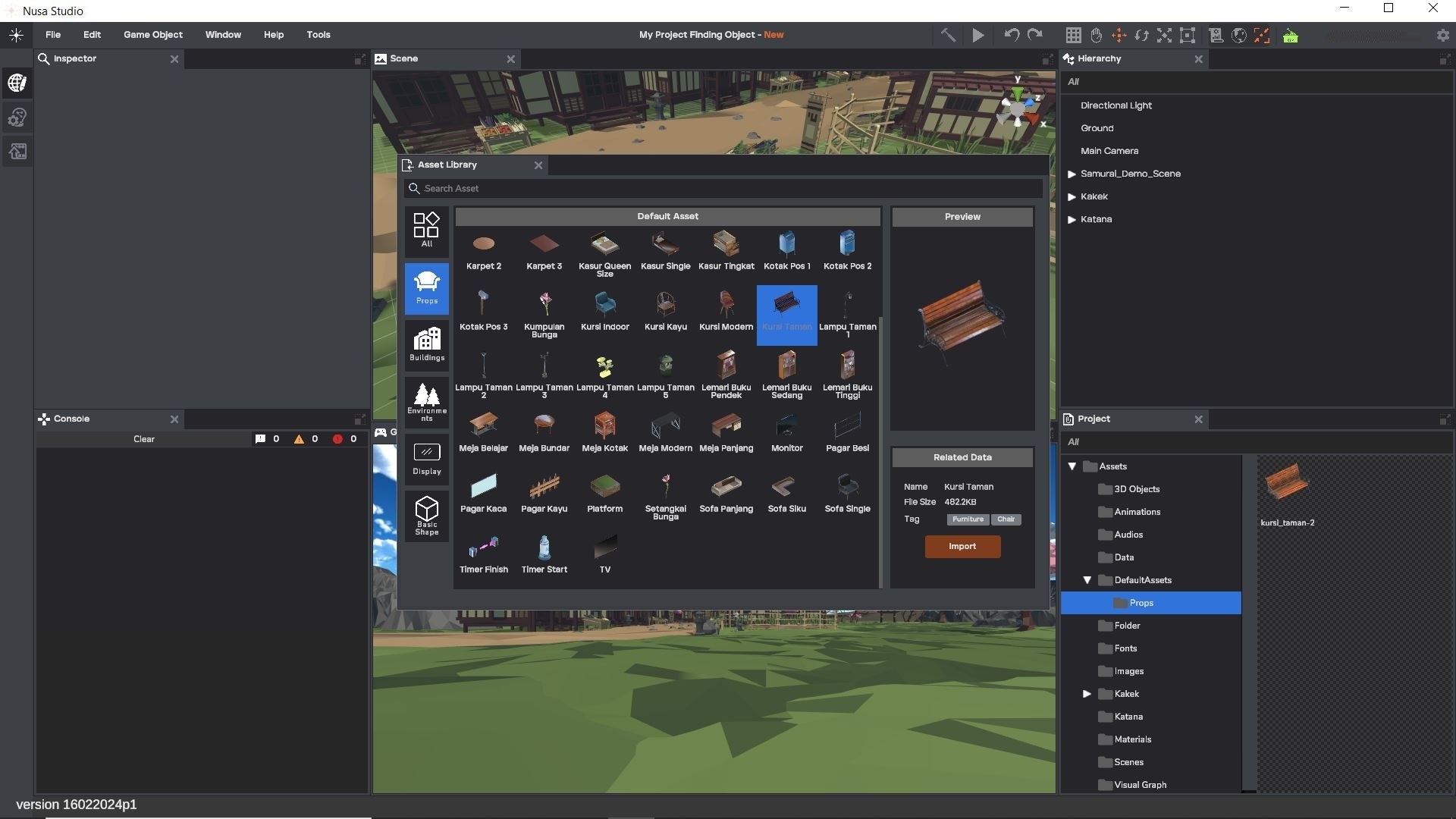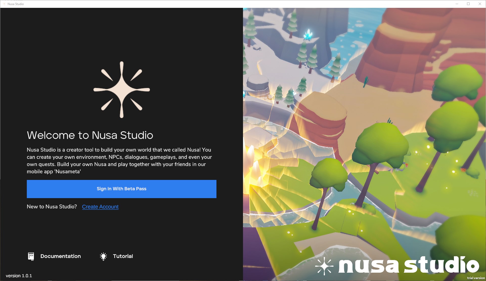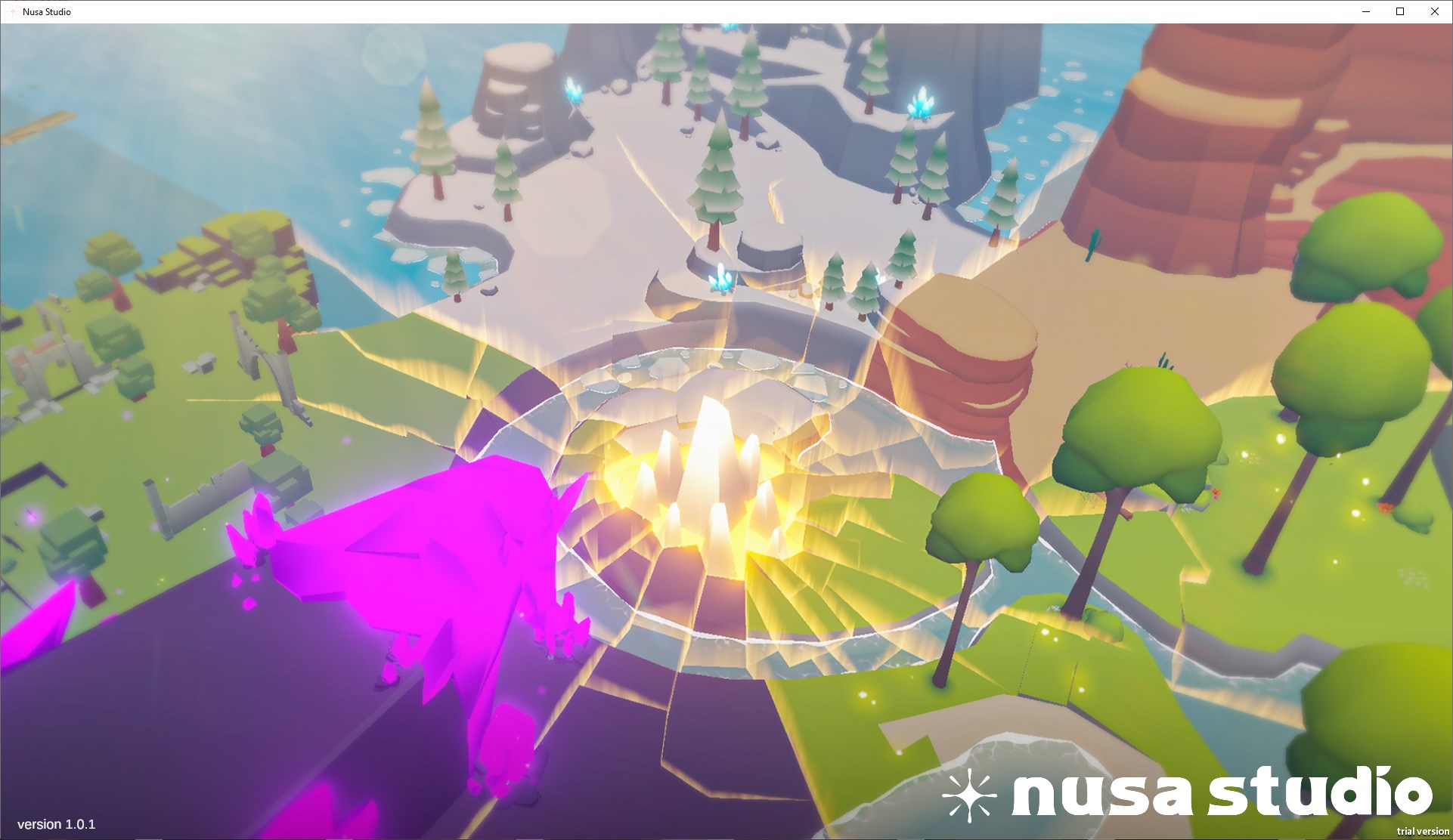 Nusa Studio is a digital, virtual world platform where users can create a virtual world that allows everyone to participate in the world-building processes without limits. Users will have the creative freedom to craft their virtual space, from designing the world, creating logic for objects with visual scripting, and the ability to import 2D, 3D, Music, Video, Font, and Visual Logic scripting of their own.