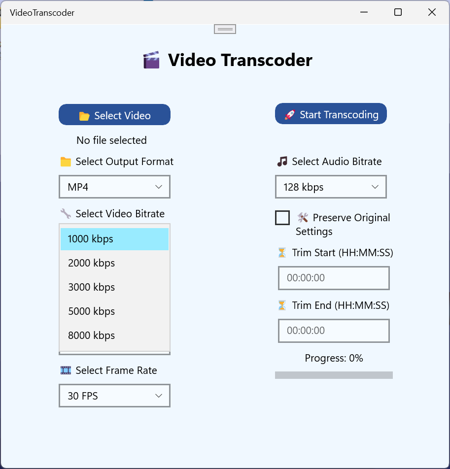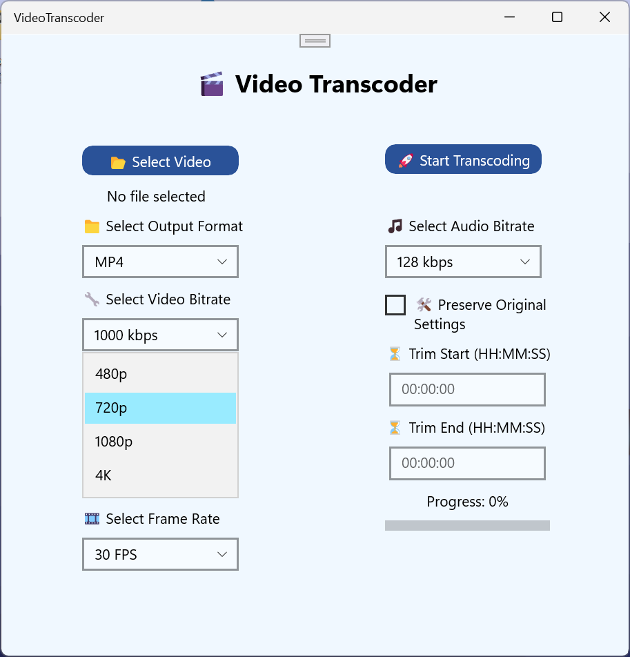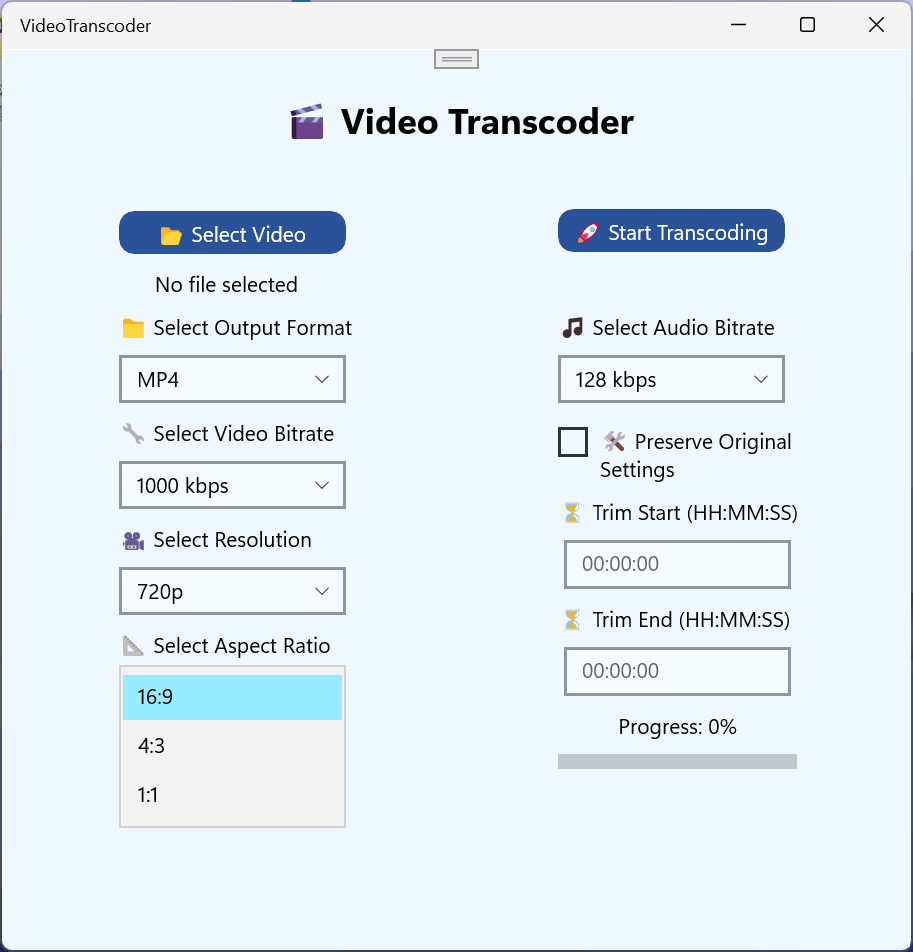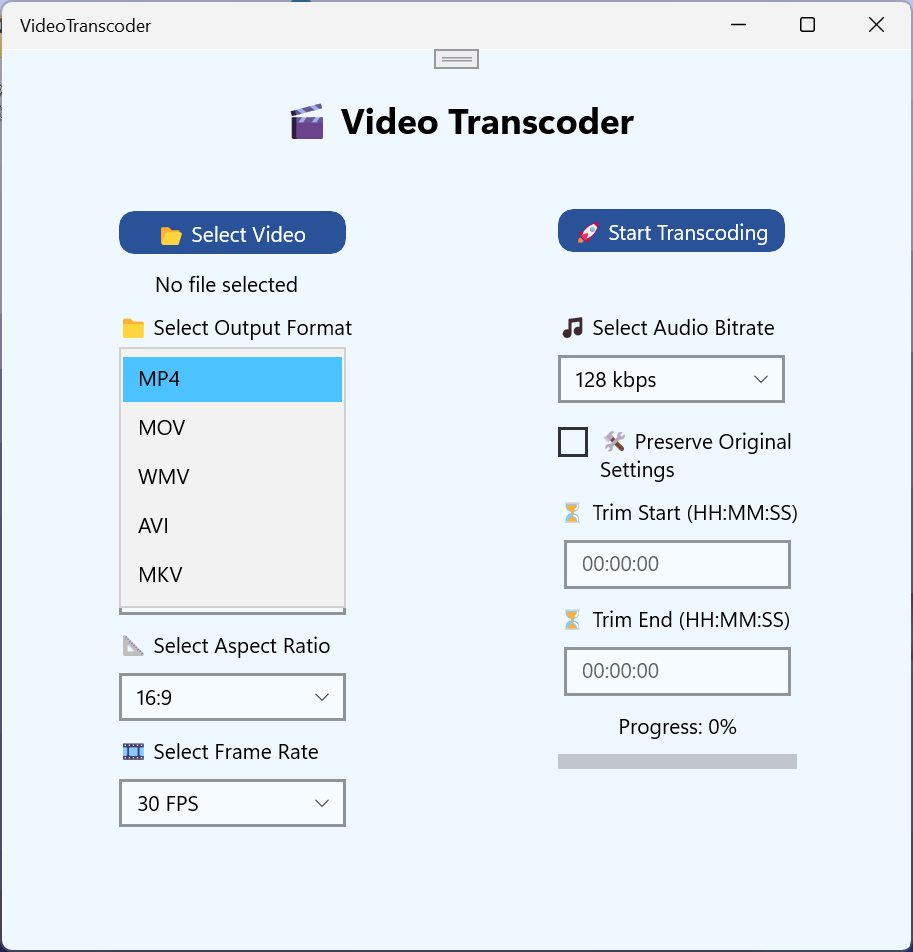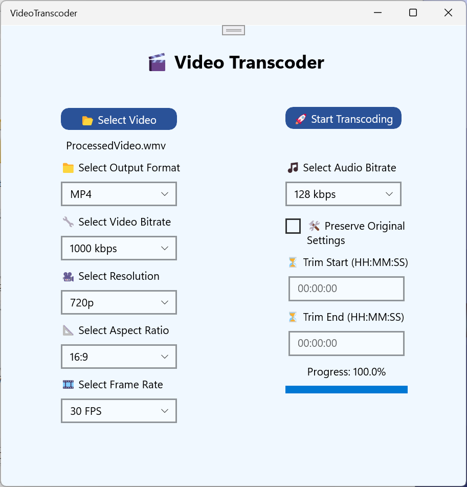 Perfect for content creators, professionals, and casual users, Video Transcoder helps you convert and optimize your videos with just a few clicks.