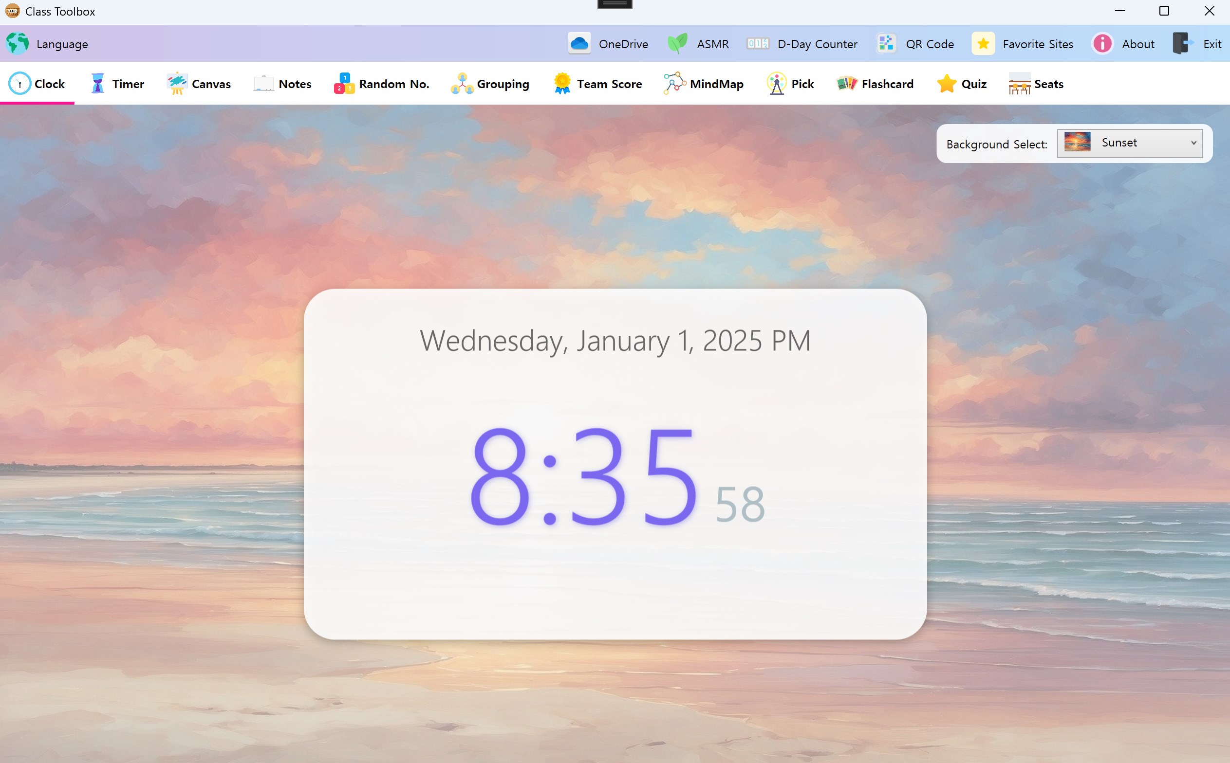 From clocks, timers, canvases, and whiteboards to random number draws, group assignments, and seating arrangements, this program provides a variety of tools you may need in the classroom.