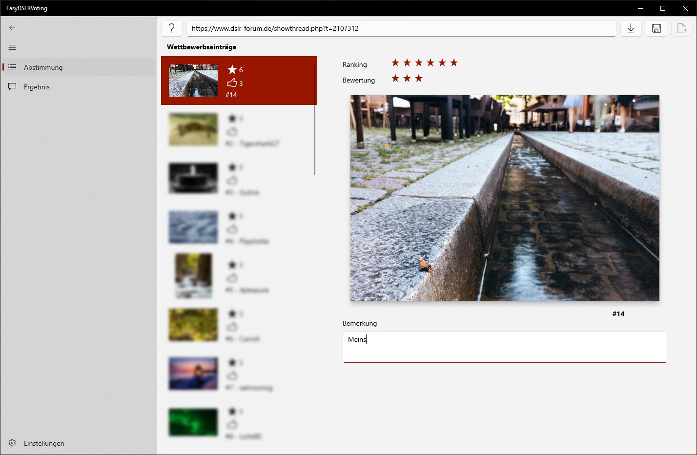 EasyDSLRVoting is designed to help you generate competition votes that comply with the rules. You can copy the results from the app and upload them to the forum.