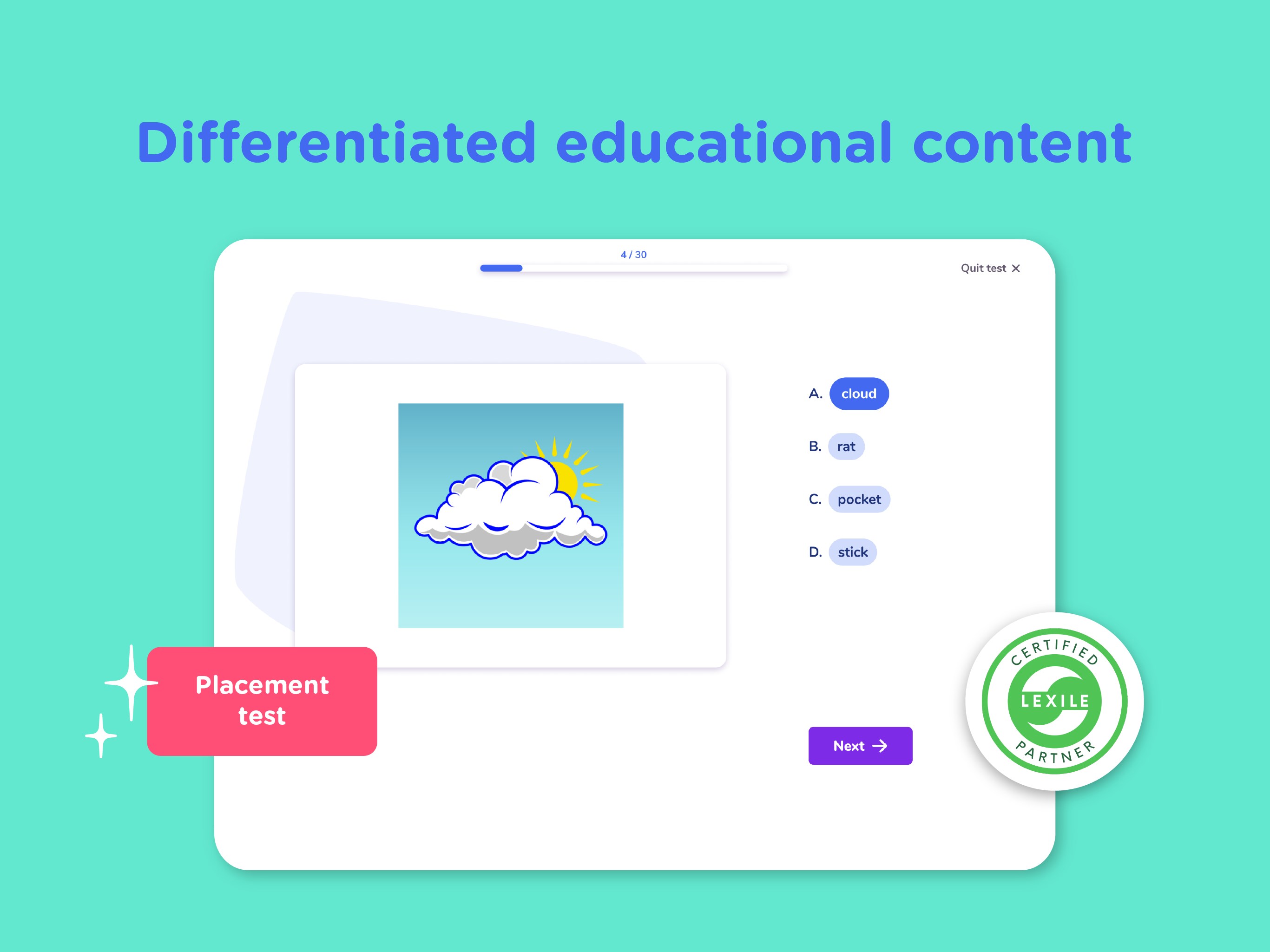 Lexile-based placement test