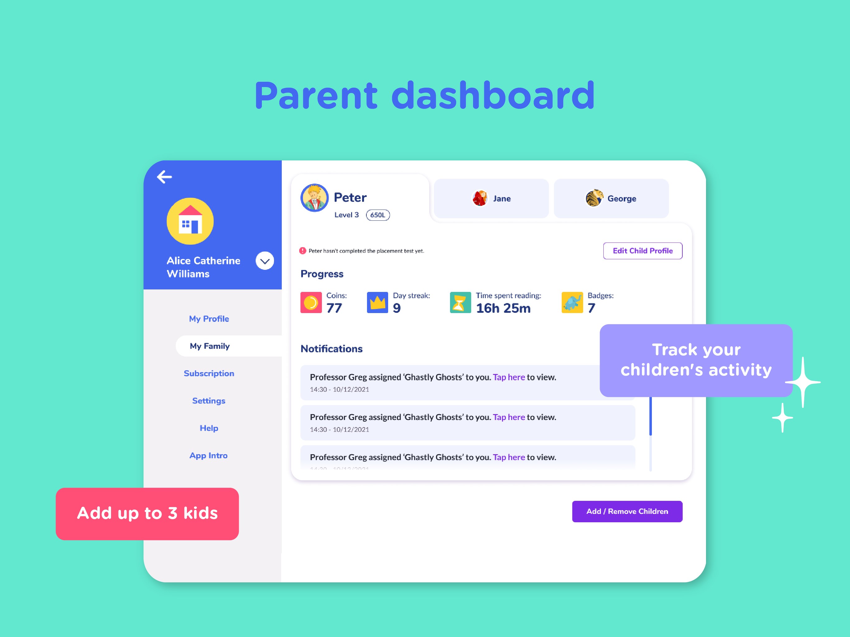 With the family plan add up to 3 children users