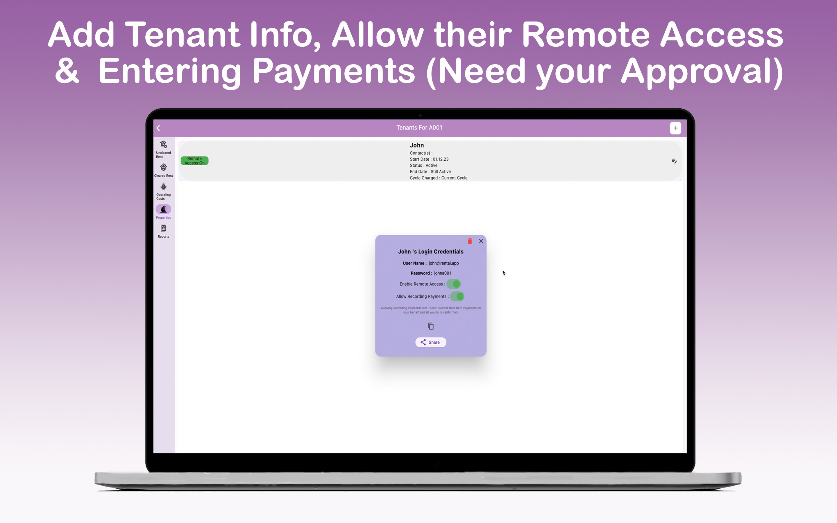 Allows landlords (Admin Account) to give registered users remote access to their data.