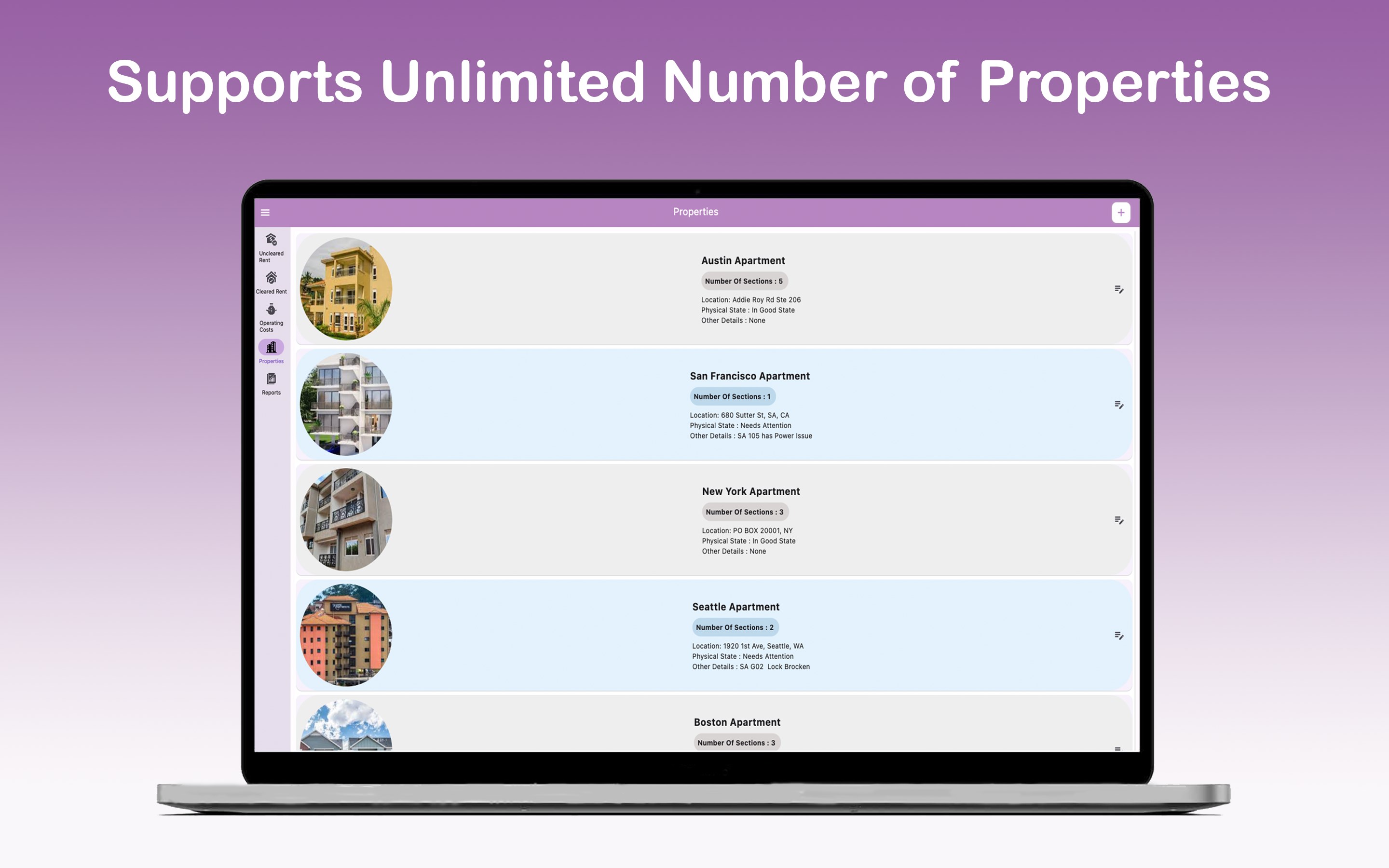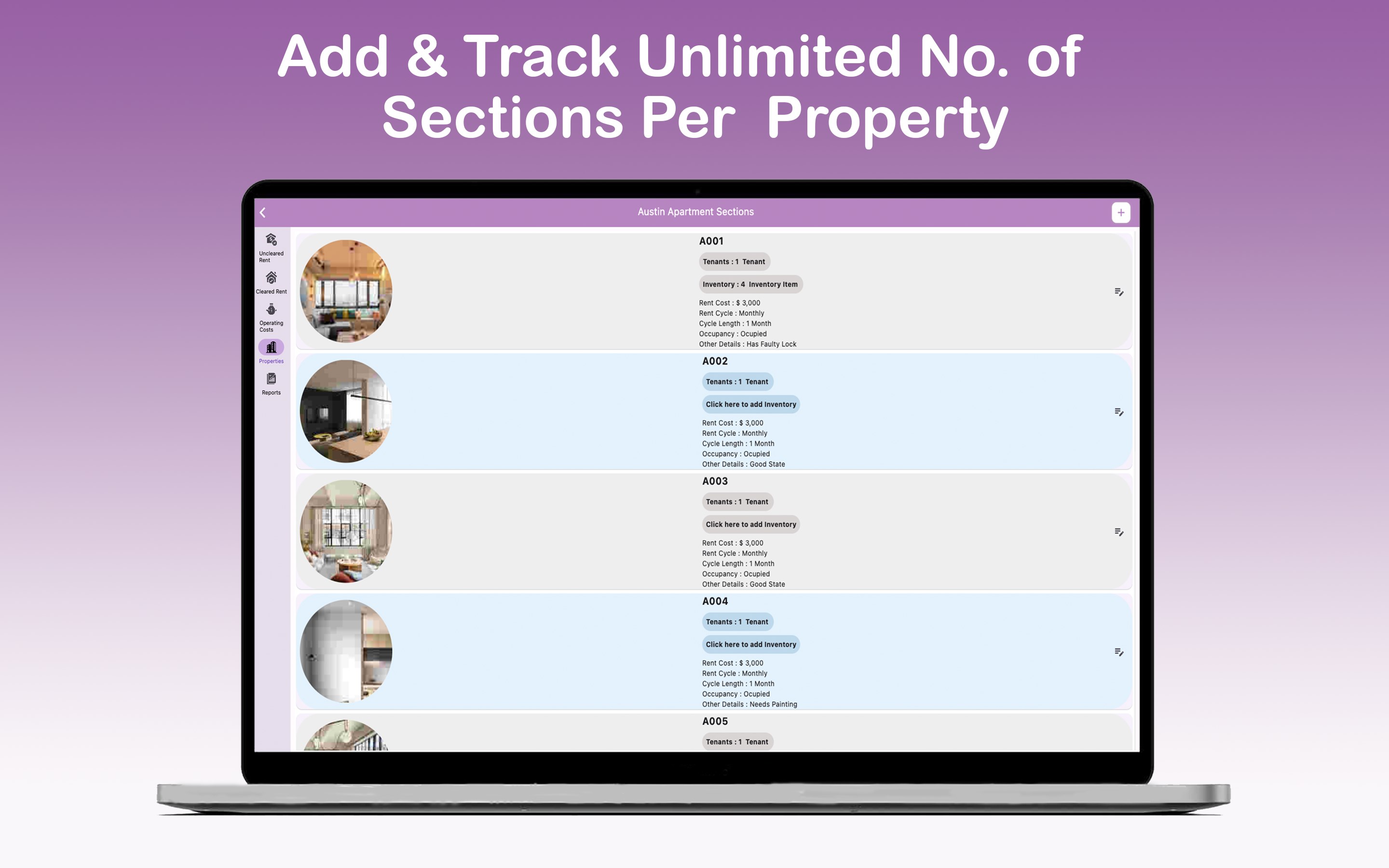 Support for an unlimited number of properties, sections, and inventory items, allowing for scalable and flexible property management.