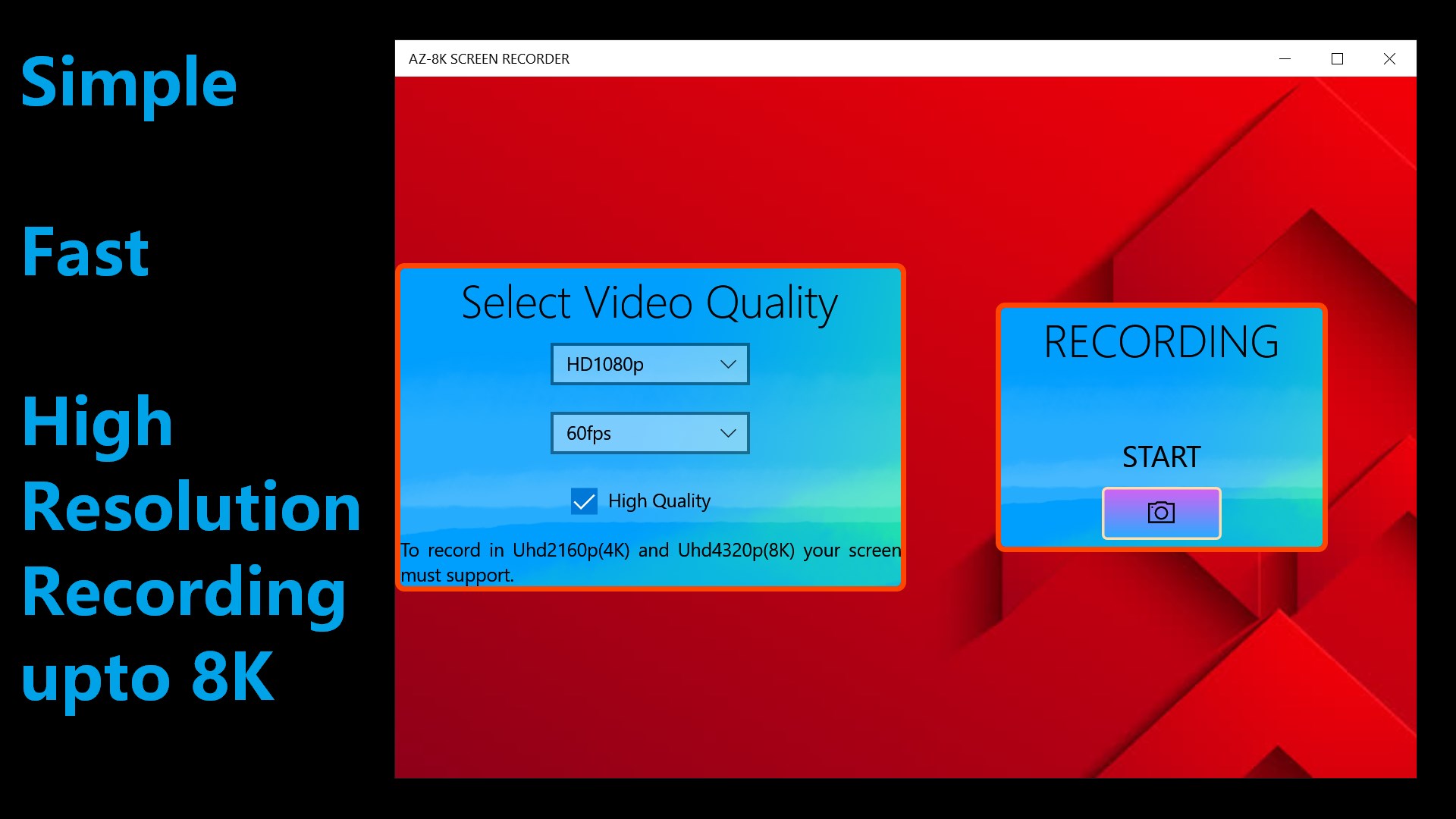 AZ -8K Screen Recorder is a stable, high-quality screen recorder for windows that helps you record smooth & clear screen videos. This screen recording app provides an easy way to record screen videos such as video tutorials, video calls, game videos, live shows.