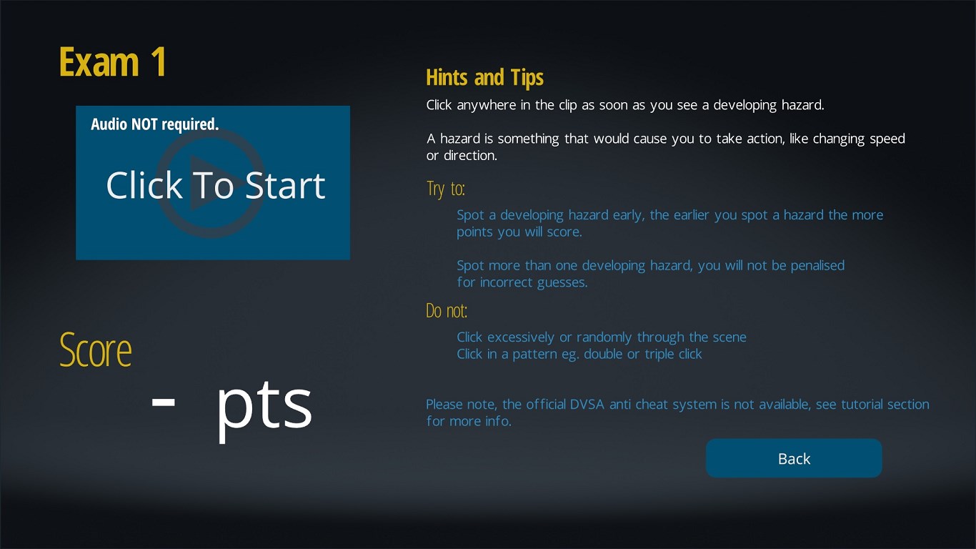 - Valid for UK Car and Bike Hazard Perception Tests.