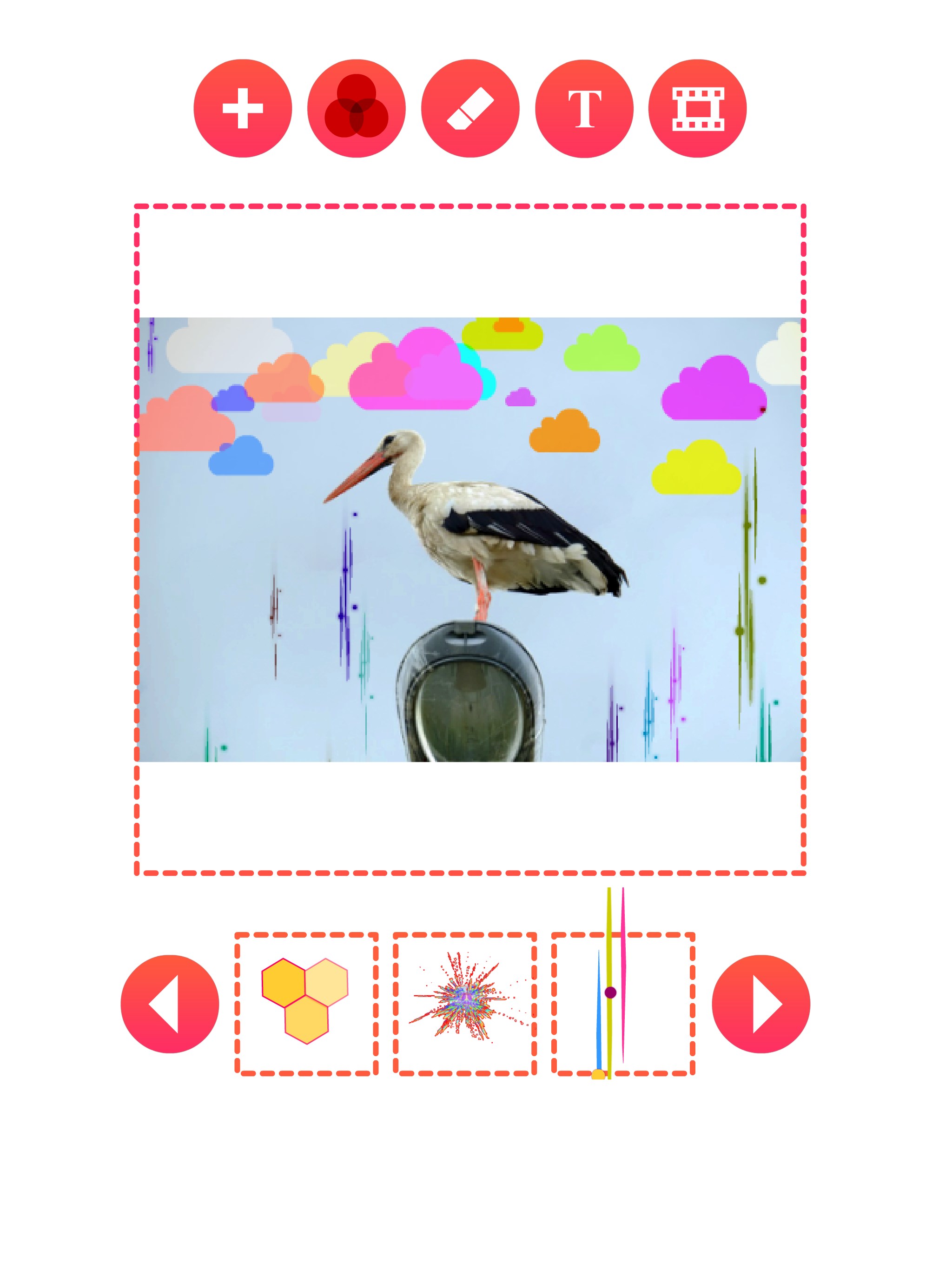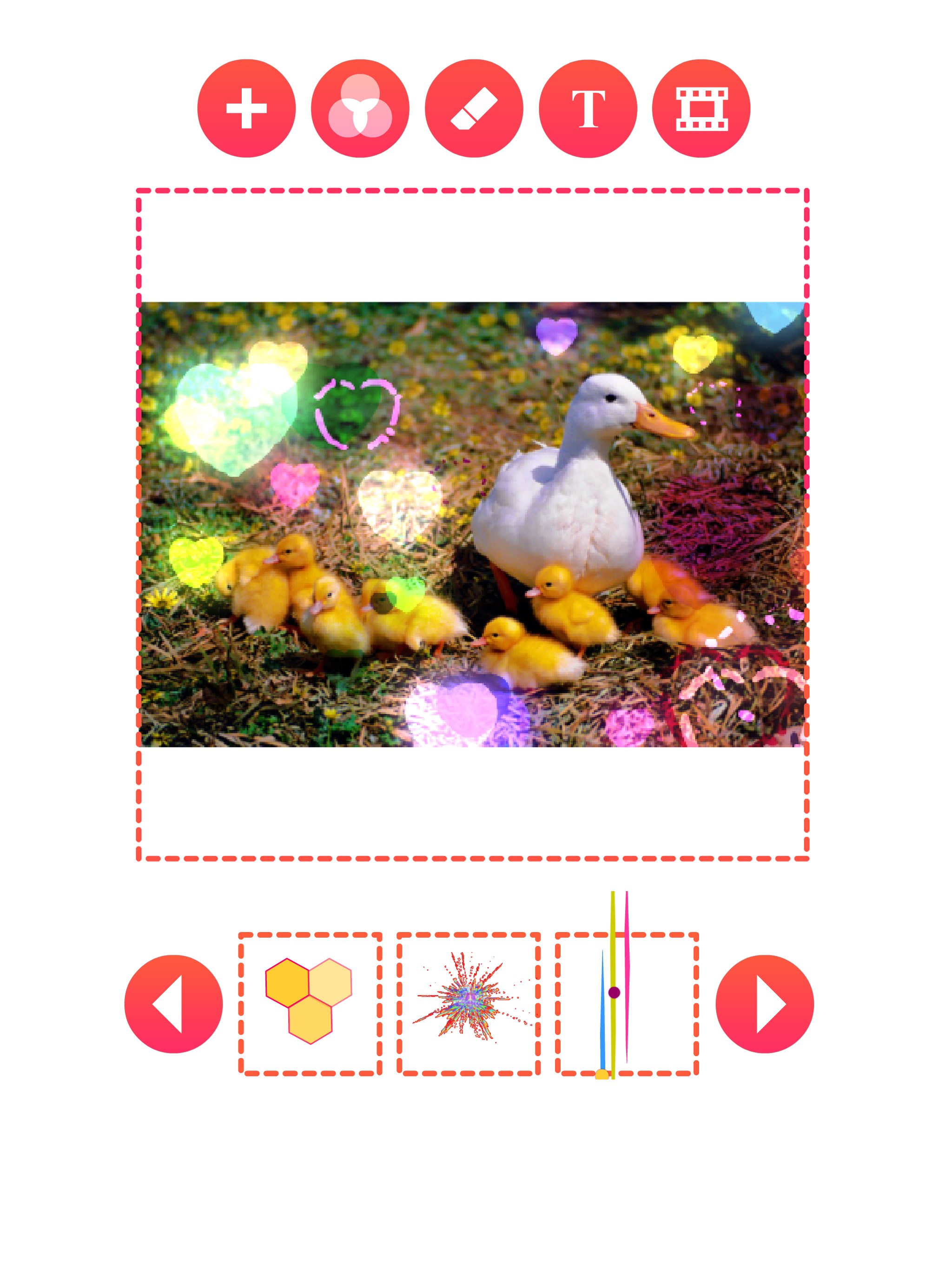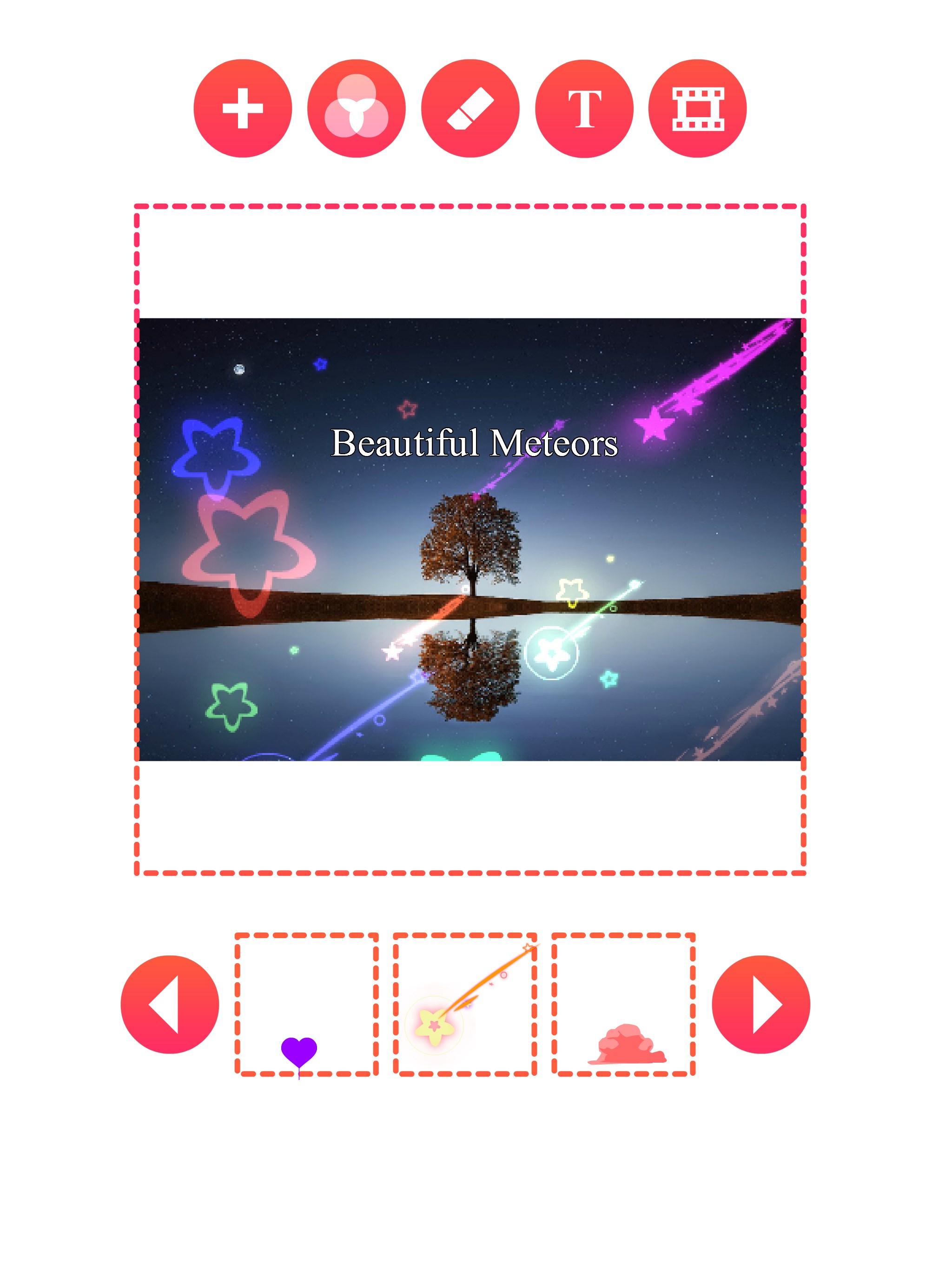 Spray glitter and sparkle animation to your photos and save the result as mp4 video or animated gif.