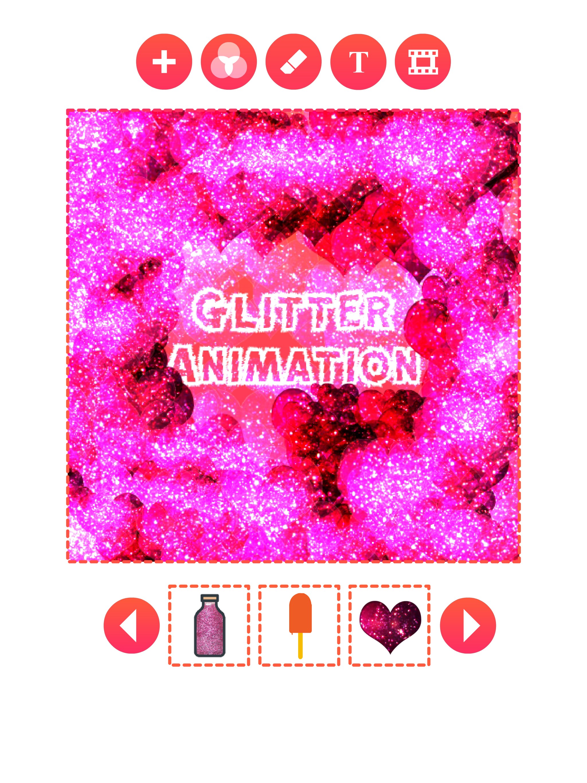 • more than 60 glitter effects (sparkle, floral, lights, jewelry, stars, and many more..)• save as mp4 video or animated gif.• seven glitter blend modes.• add text.• glitter eraser tool.• simple and intuitive user interface.
