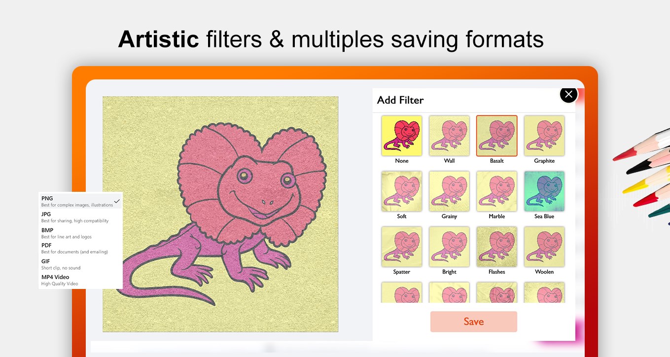 Show your creativity and draw you mind out on the screen with the pencil sketch feature
