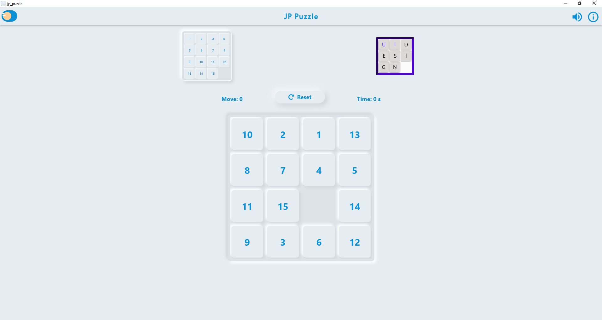 It is a simple slide jp puzzle game, where the player has to arrange the squares into sorted order.