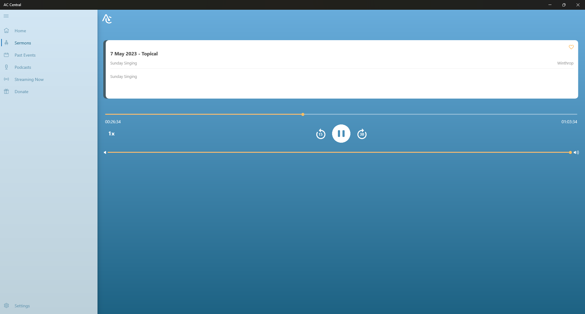 This is next-generation software, owned and managed by the Apostolic Christian Church of America. The sermon content currently on AC Sermon Streamer is being transitioned over to AC Central.