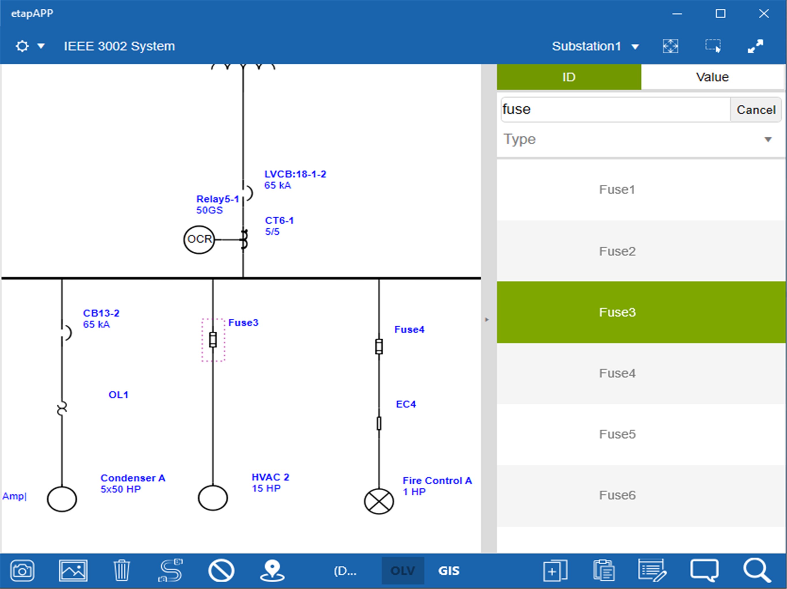 Access the one-line diagram including nested composite networks.Insert, add, or remove elements and make new connections as needed.Geotag equipment with tablet\'s location as you walk the field.Find equipment based on ID or property value.Use textbox search to find and jump to notes or points of interest.Tap an element to view or edit its property data.Filter property tables by familiar ETAP editor pages, related studies, or using customizable imported Datablock templates from ETAP.Select an element then capture images using the tablet camera or batch associate existing images from the device photo library.Send changes back to ETAP for review and approval.