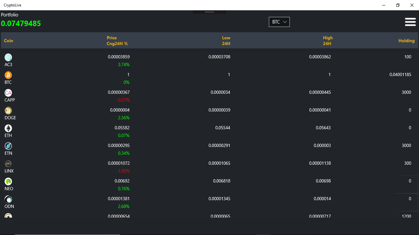 CryptoLive is an application that allows you to track live price of almost cryptocurrencies(Bitcoin, Litecoin, Ethereum, Dash, Neo, Xrp ...), manage portfolio, track profits and losses of investments.
