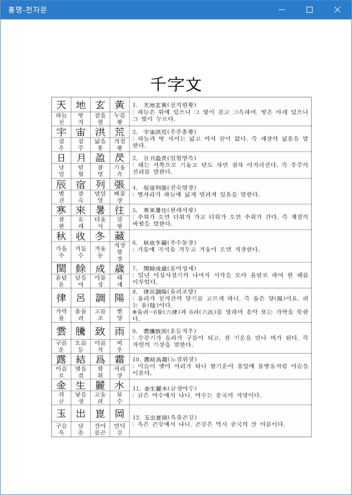 *.천자문 이미지 출처: http://blog.naver.com/macrocosmic