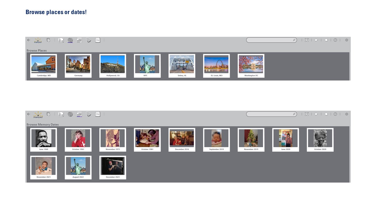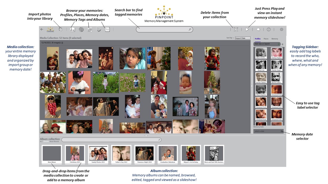 Discover Pinpoint Memory Management System, the ultimate solution for organizing, browsing, and celebrating your precious memories. Whether it's a vast digital photo collection or cherished film photographs, Pinpoint transforms your memories into a beautifully curated digital album, ensuring they are not only preserved but also easily shared.