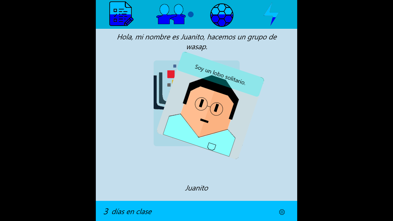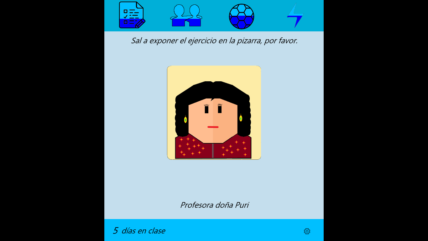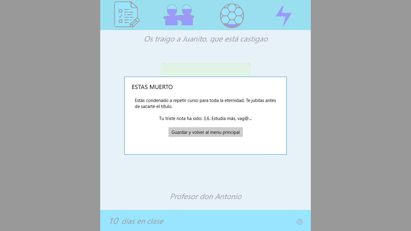 En DAM simulator te reencarnas como un estudiante del curso de DAM. Deberás avanzar durante el curso tomando las decisiones correctas. El objetivo es intentar llegar al final con los atributos más altos posibles (sin pasarte). La nota final se calculará en base a estos atributos.