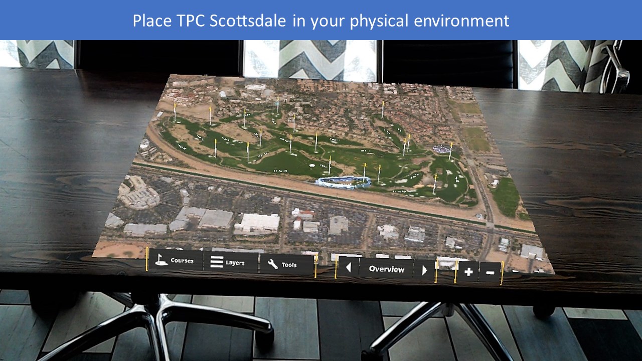 The TPC Scottsdale experience is the first holographic golf application designed to enhance your enjoyment of the sport, and to enhance your perspective of a tournament. Download it today.