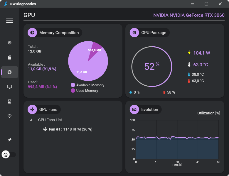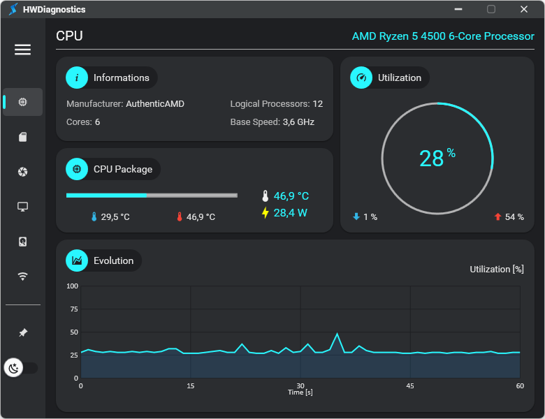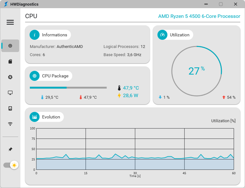 HWDiagnostics is an application designed to provide a detailed analysis of the performance of your computer's key components, including the CPU, GPU, RAM, and more.