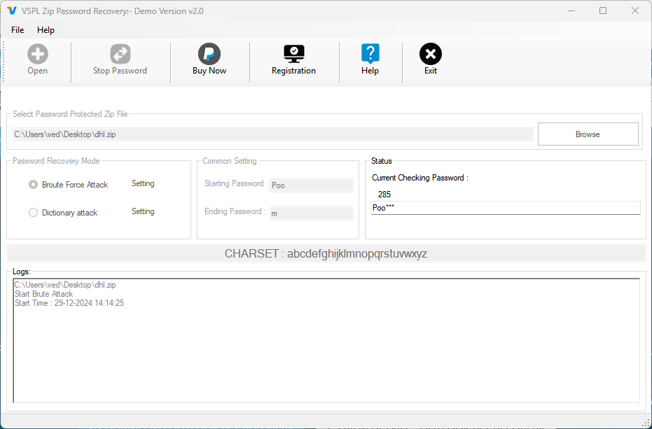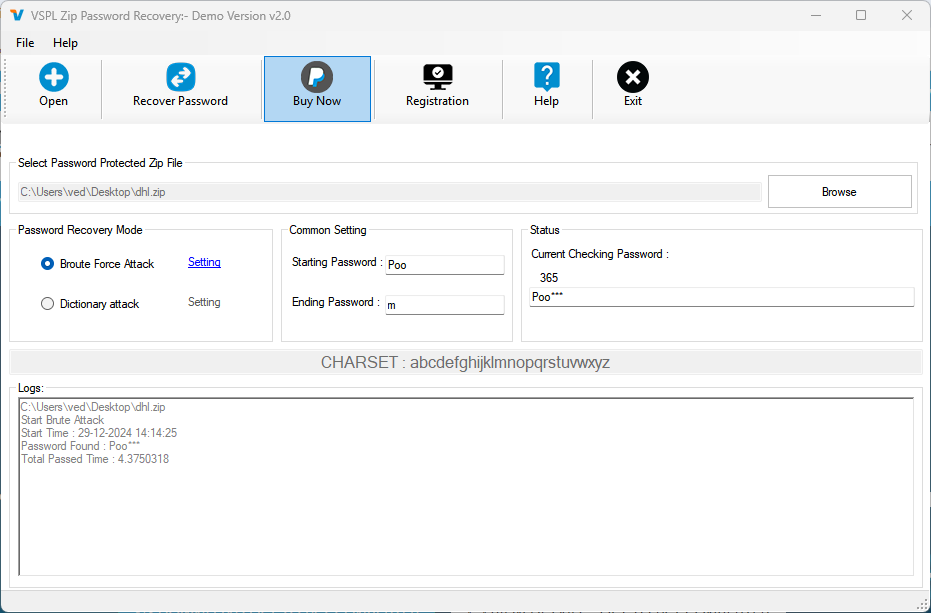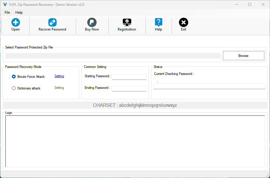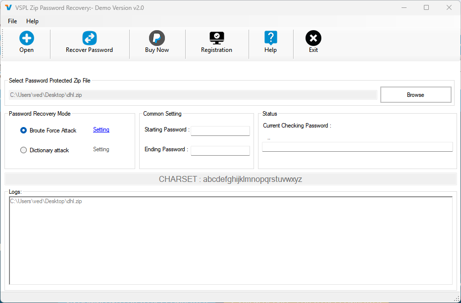 Full Version: There is no limitation of VSPL Zip Password Recovery Software