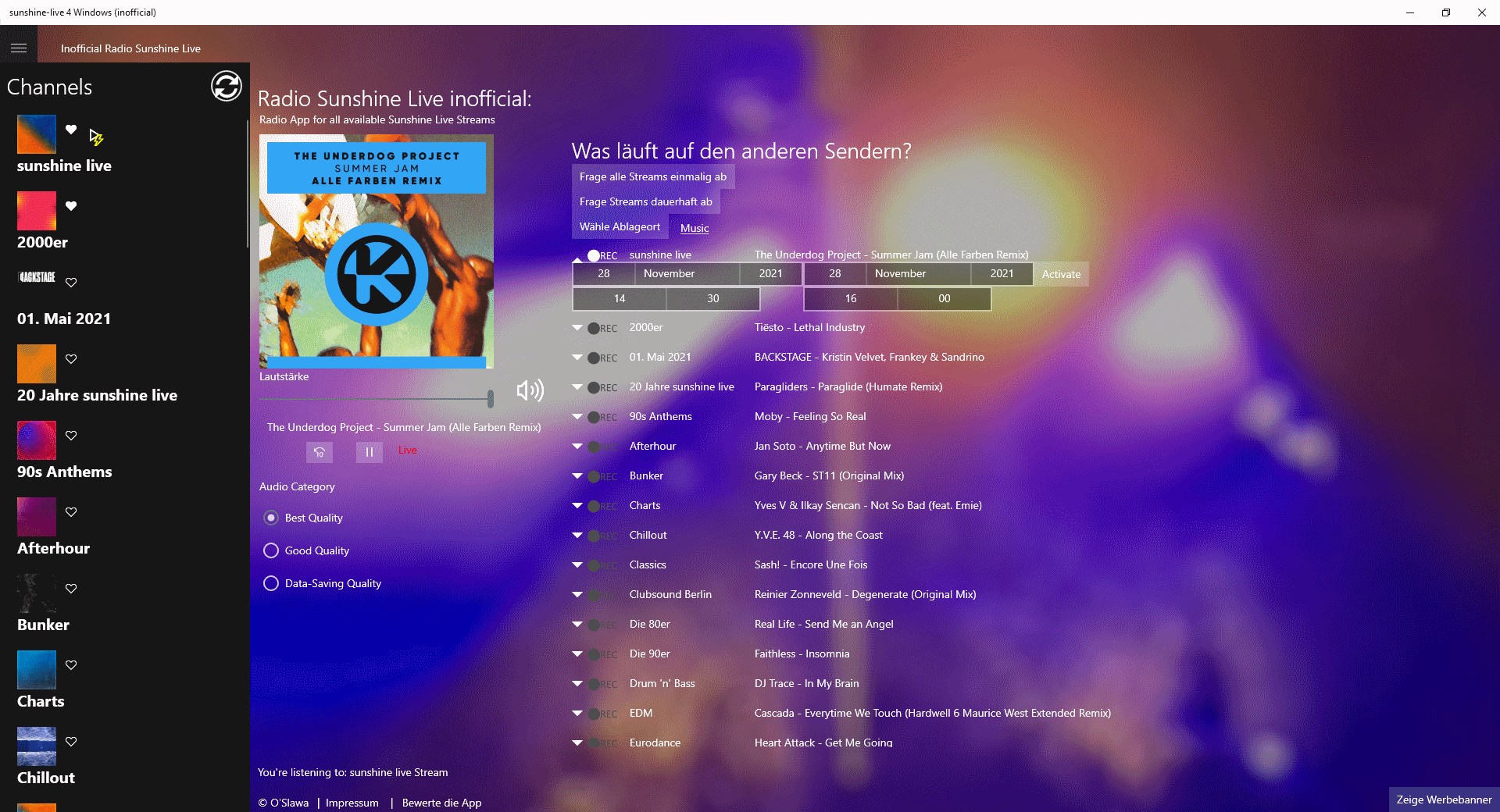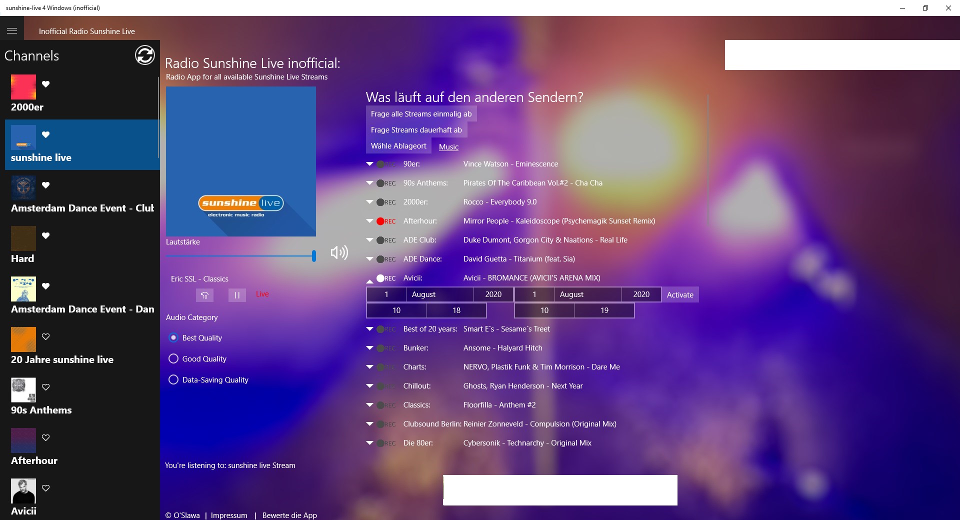 With this app you get all streams that Sunshine Live offers on their website.
