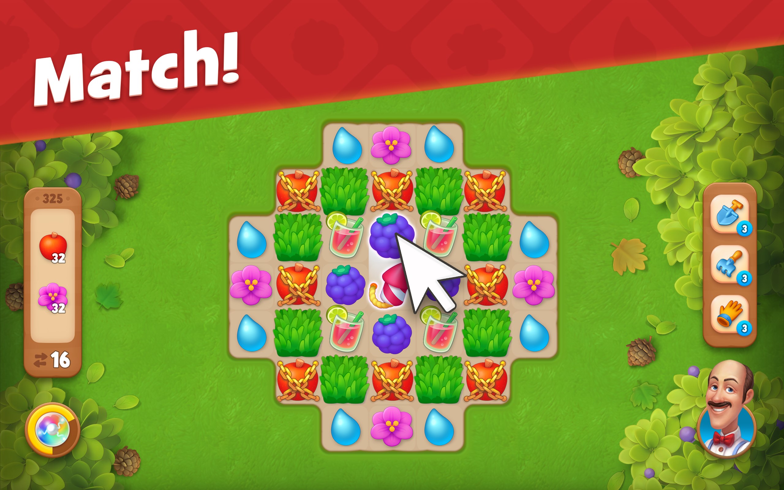 Embark on an adventurous journey: beat match-3 levels, restore and decorate different areas in the garden, get to the bottom of the secrets it holds, and enjoy the company of amusing in-game characters, including Austin, your butler! What are you waiting for? Build your dream garden!