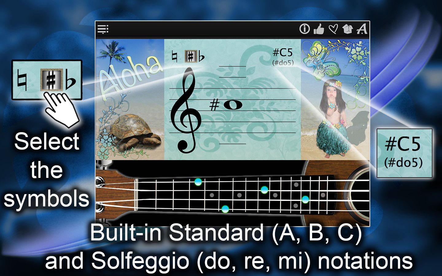 Learn or improve the sight reading of the notes, in any notations, on the ukulele fretboard, using this app just a few minutes each day