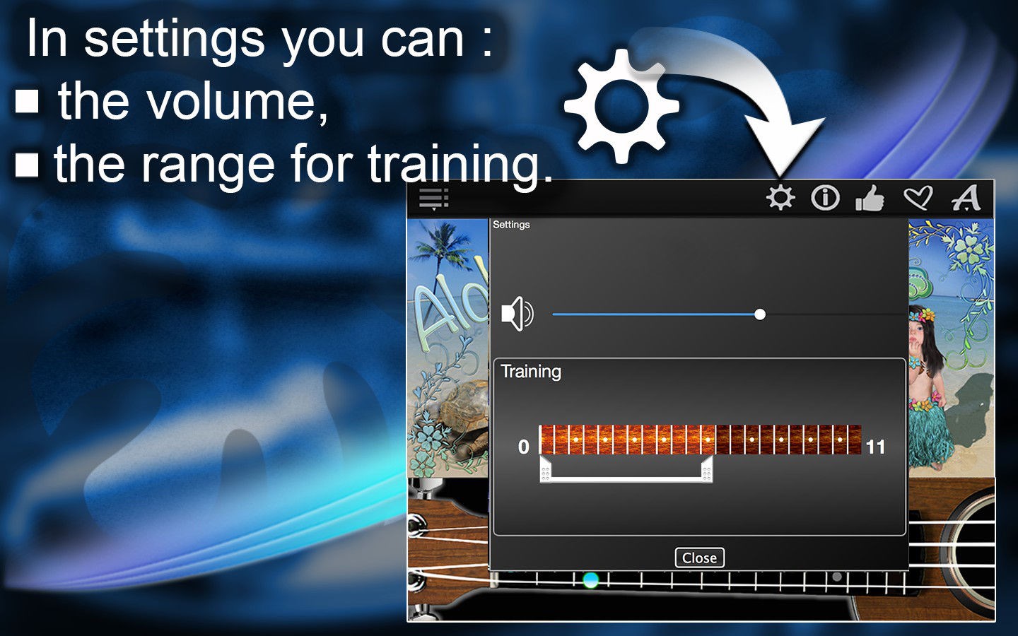 6. The possibility to tune your ukulele, using the string sounds on the note explorer page;