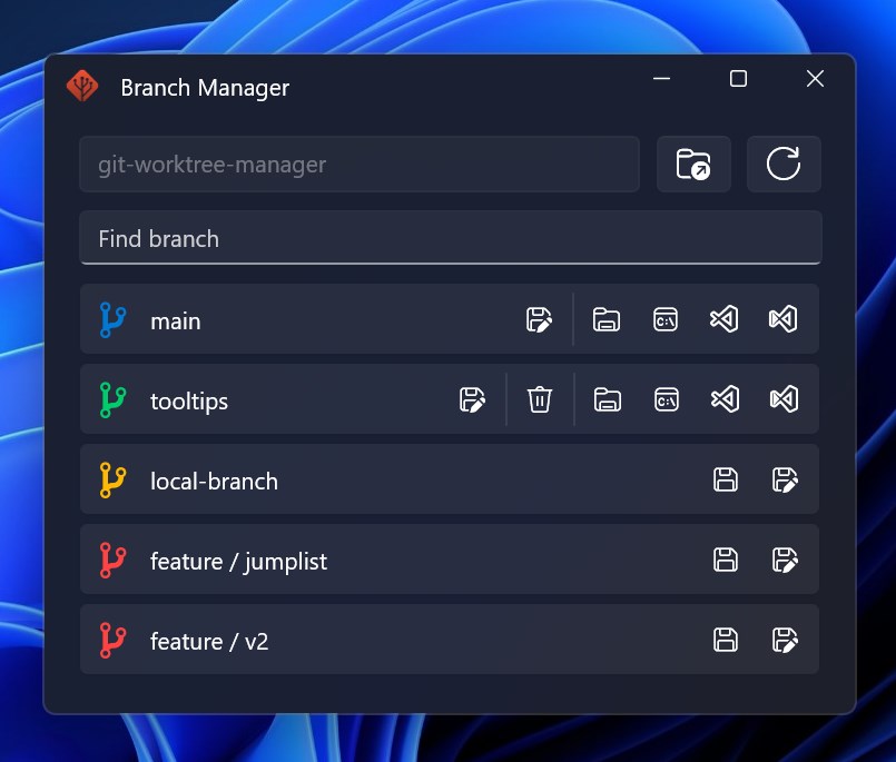 Branch Manager is a GUI for git worktree.