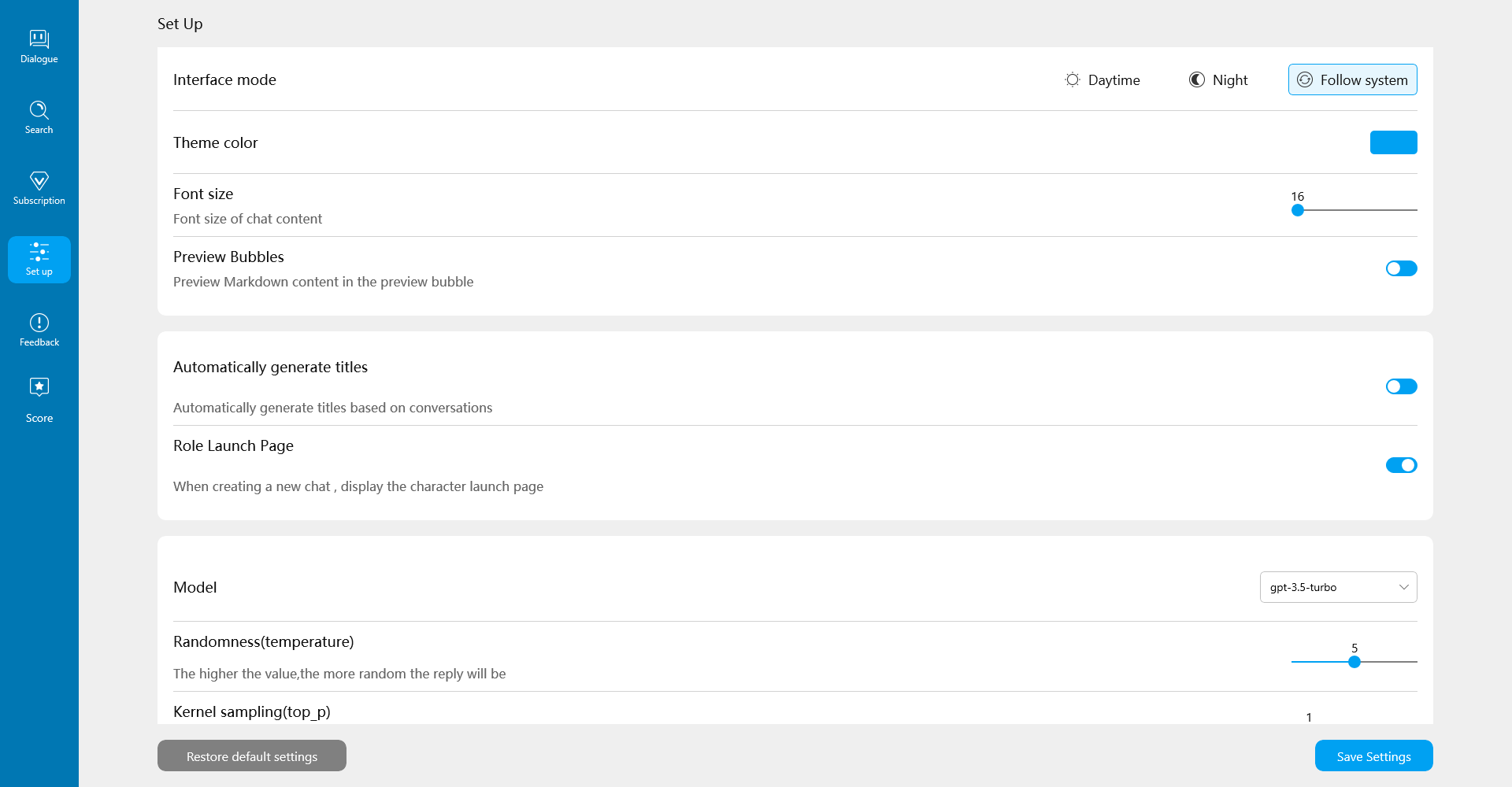 Support one-click login with Microsoft accountMultiple roles to meet the needs of various industriesSupport the latest Chatgpt engineMarkdown support: LaTex, mermaid, code highlight, etc.Responsive design, dark mode and PWAFast first screen loading speed (~100kb), support streaming responseAwesome promptsAutomatically compresses chat history to support long conversations while also saving your tokens