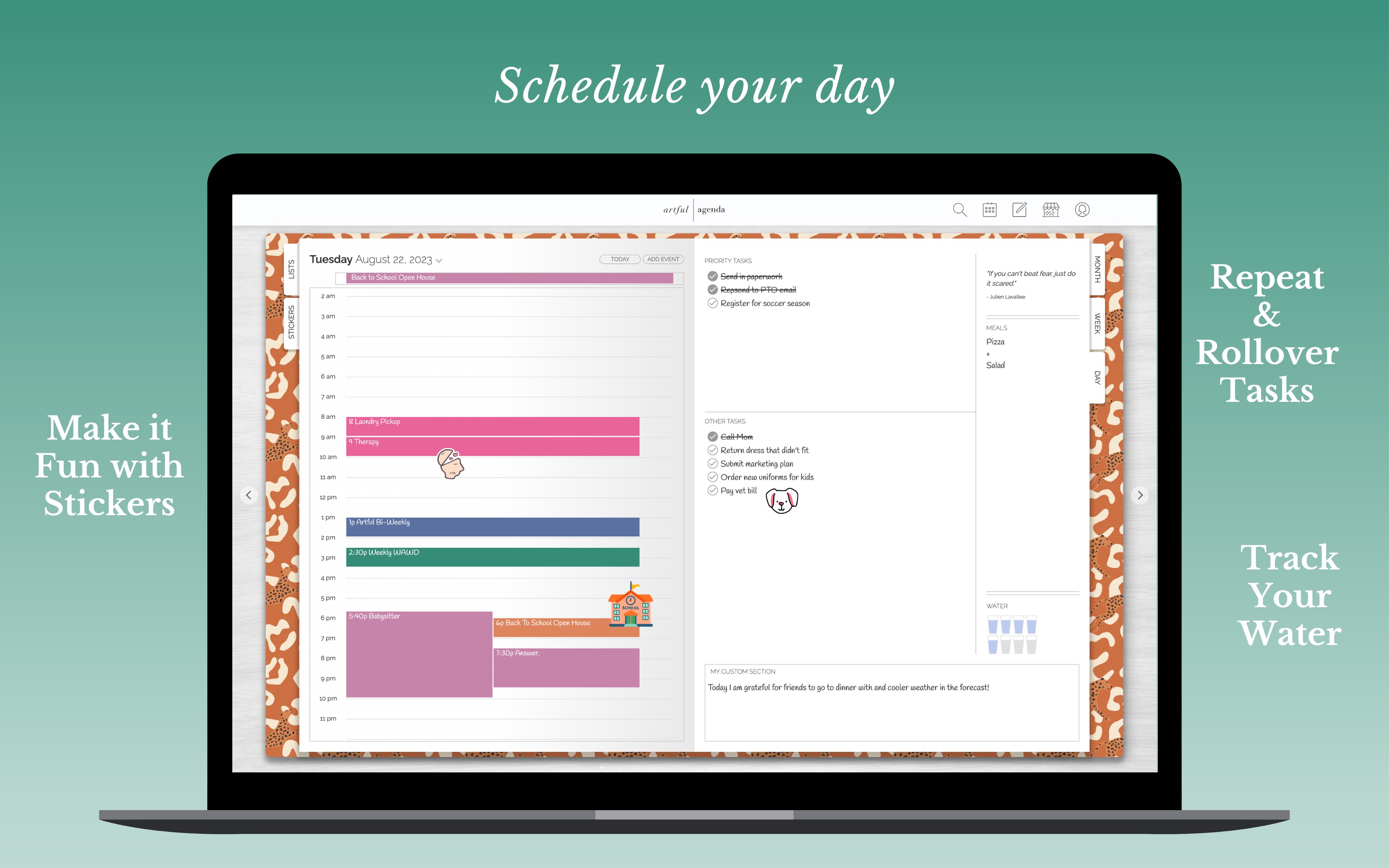 - Customize event colors, and choose your handwriting font