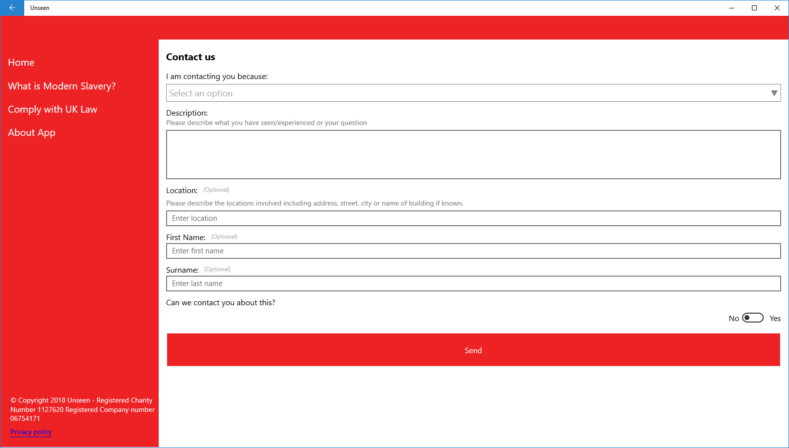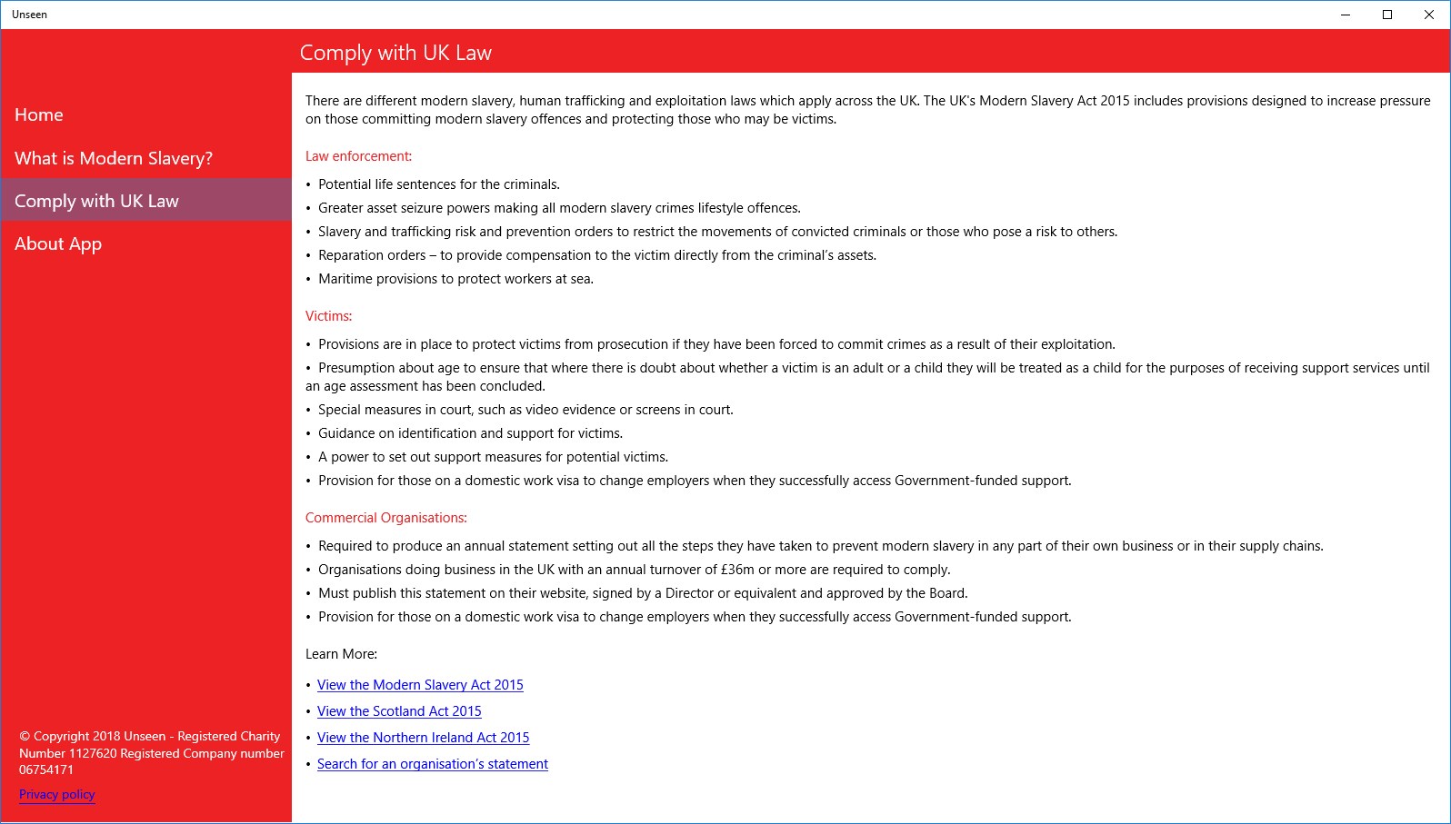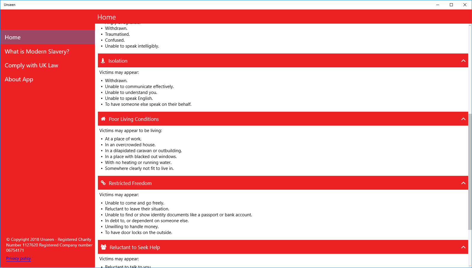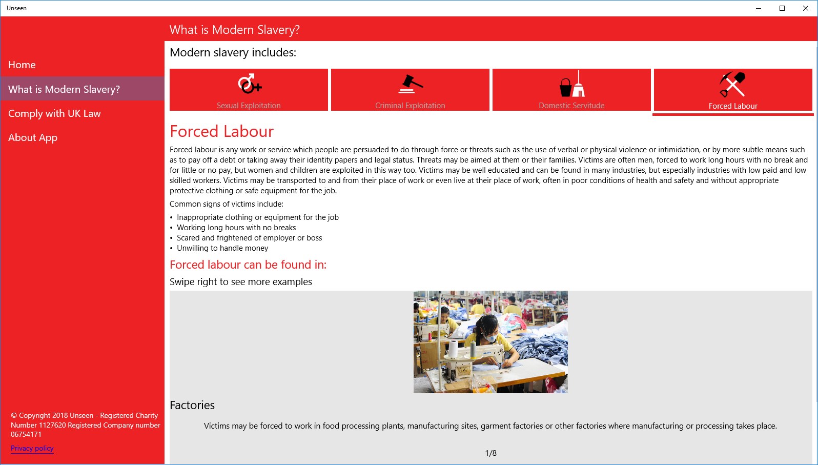 Recognise and report modern slavery or seek help through the Unseen App.