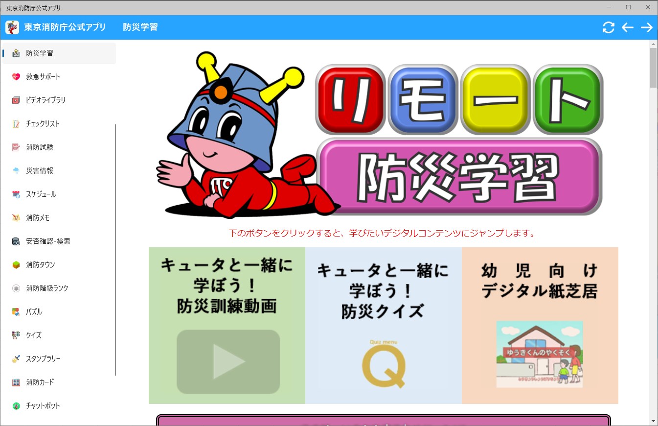 Use this fire and safety information app to easily learn about firefighting and first-aid whenever and wherever you want! As the app includes many functions such as a chatbot and maps, you can tailor use to your personal interests.