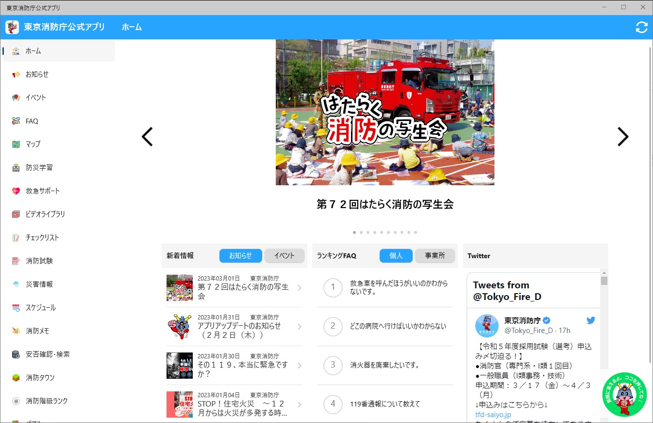 ● Linked to the official social media accounts of the Tokyo Fire Department