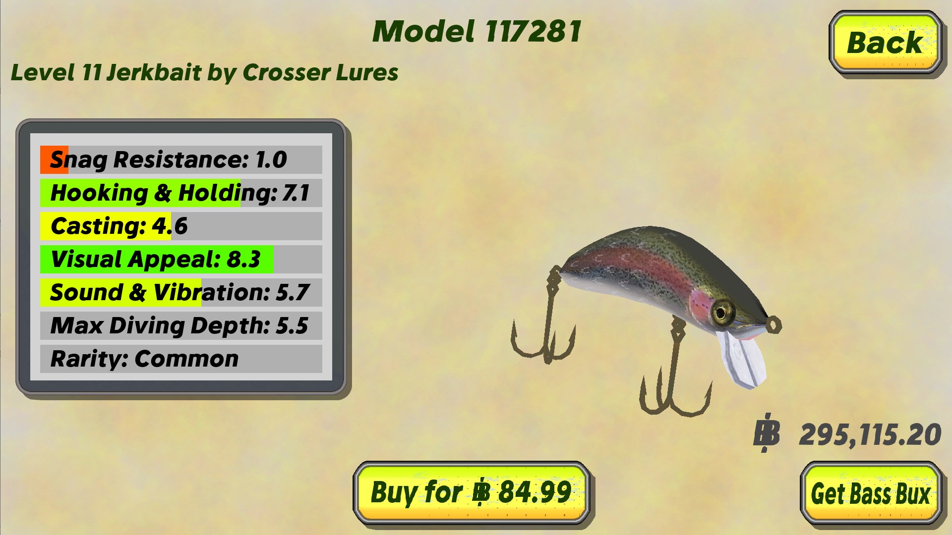 Advancing in levels gives you more control over how you work your lures, and how you scan the area for hungry bass. Even the rods and lures get better.